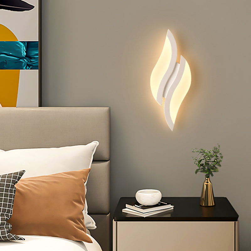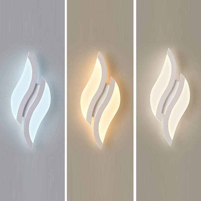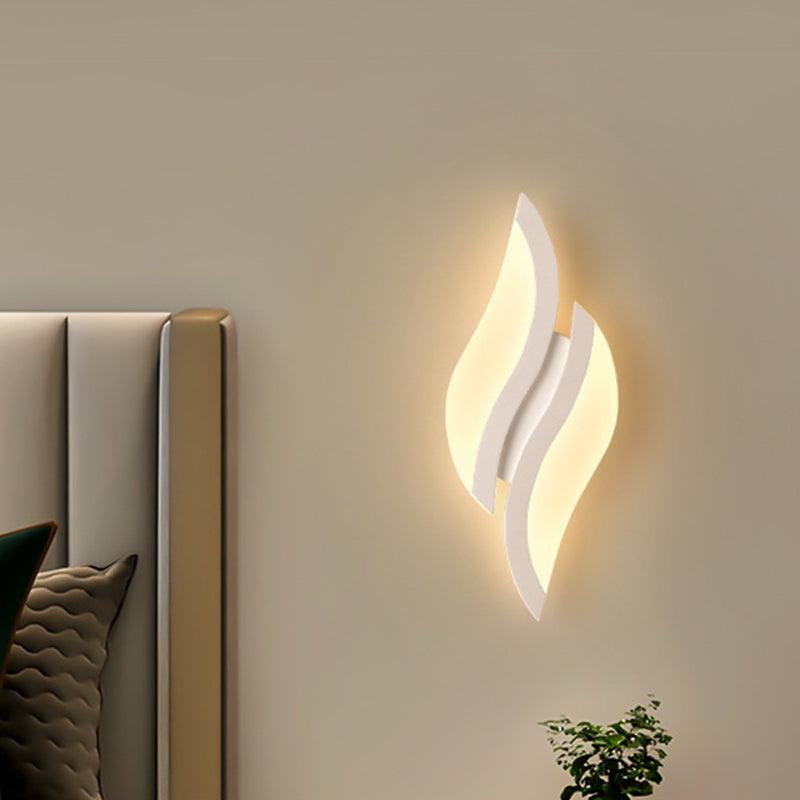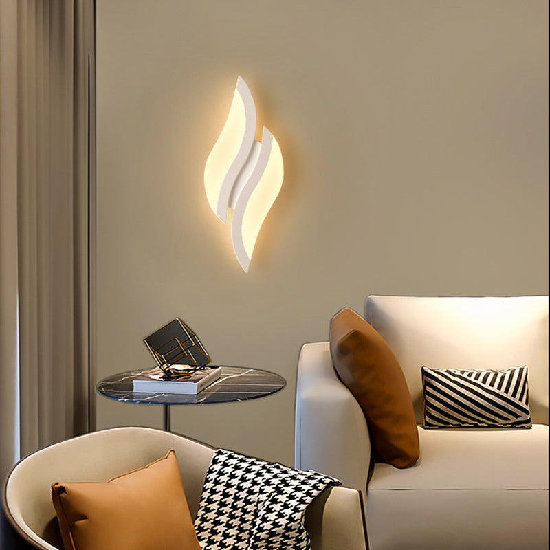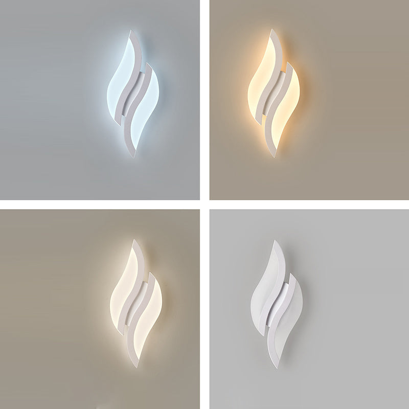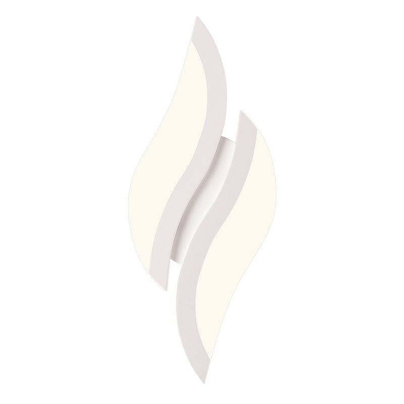 This modern minimalist LED wall sconce features a unique leaf-shaped design crafted from durable iron and acrylic in a clean white finish. Ideal for bedrooms and living rooms, it adds decorative charm and soft ambient lighting to any contemporary interior.