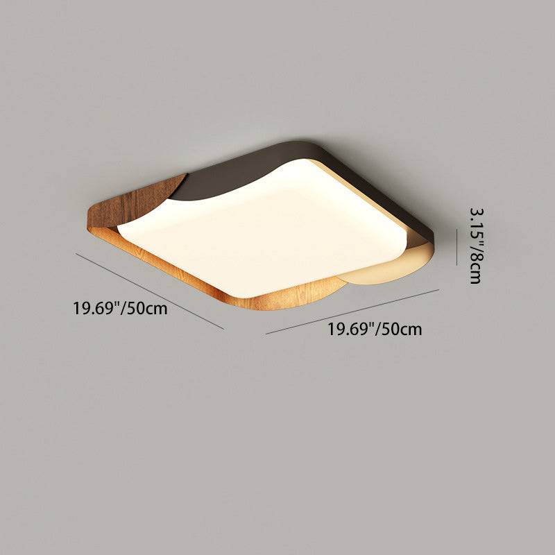 Modern Minimalist Iron & Acrylic Round Square Rectangular Wavy LED Flush Mount Ceiling Light For Bedroom & Living Room