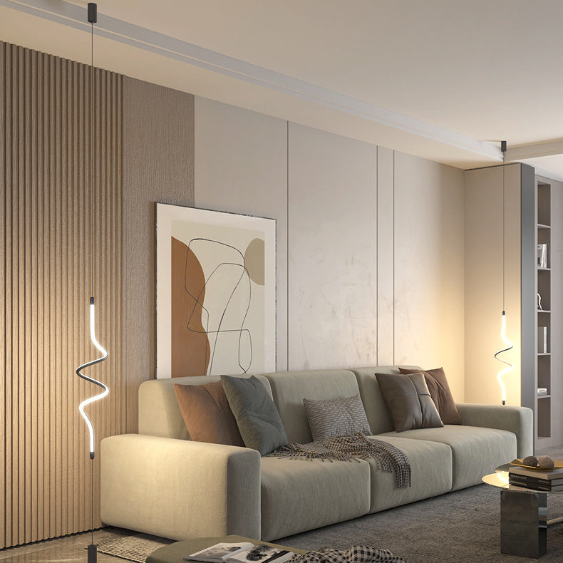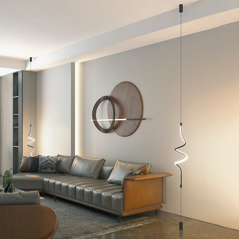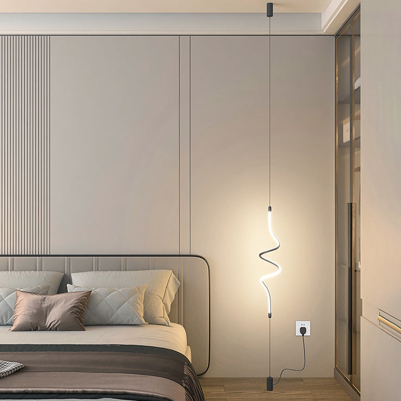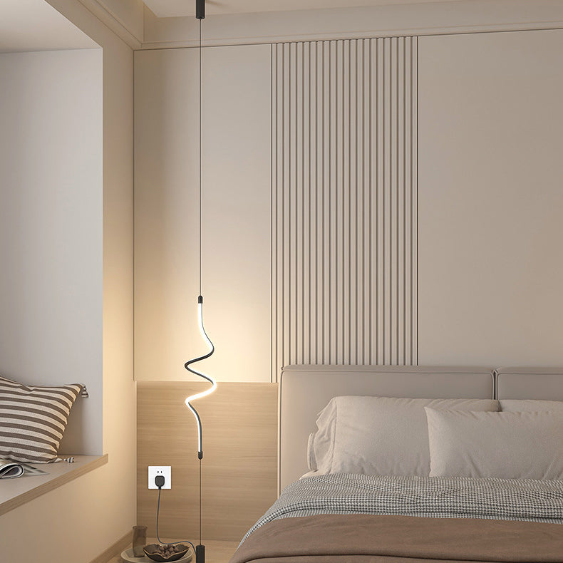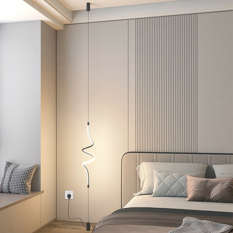 Modern Minimalist Iron Aluminum Silica Line LED Pendant Light For Bedroom