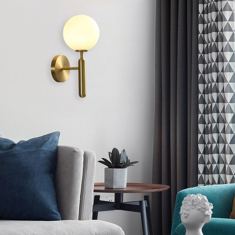 Modern Minimalist Iron Glass Strip Ball Strip Cylinder 1-Light Wall Sconce Lamp For Living Room