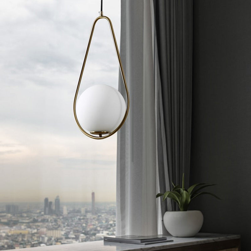 Modern Minimalist Iron & Glass Teardrop 1-Light Pendant Light For Bedroom, Living Room & Dining Room