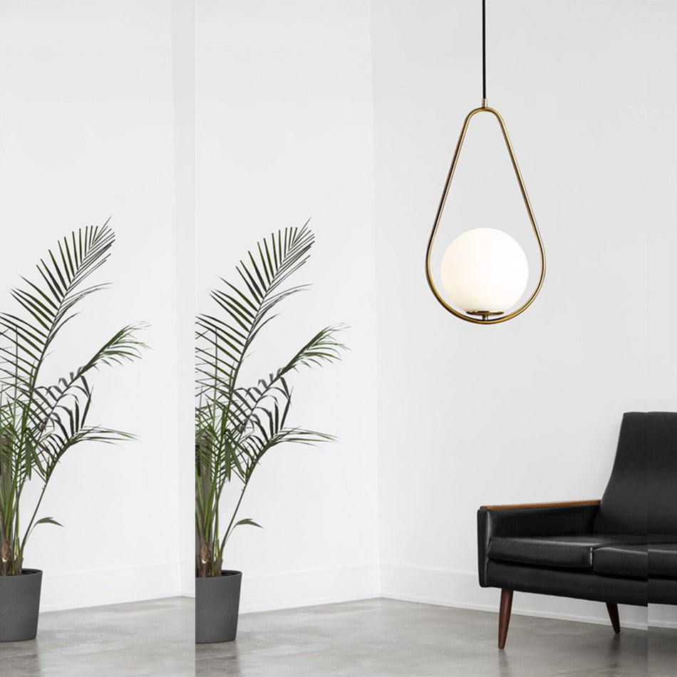 This modern minimalist teardrop pendant light features a hand-blown glass shade with an elegant gold electroplated finish, offering soft, ambient lighting perfect for bedrooms, living rooms, or dining spaces. Crafted from iron and glass, its sleek single-light design adds a stylish touch to any contemporary interior.