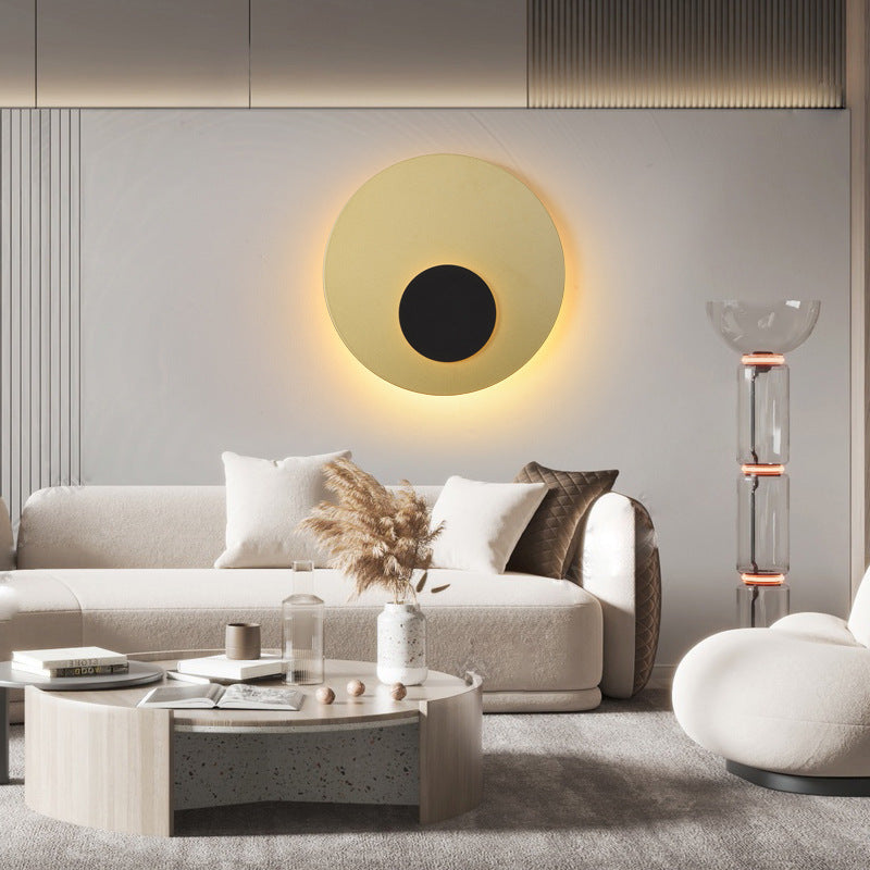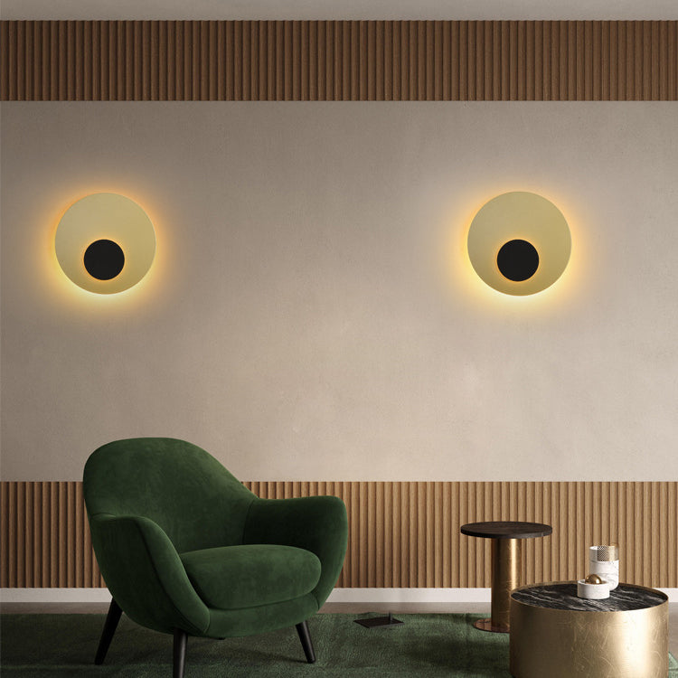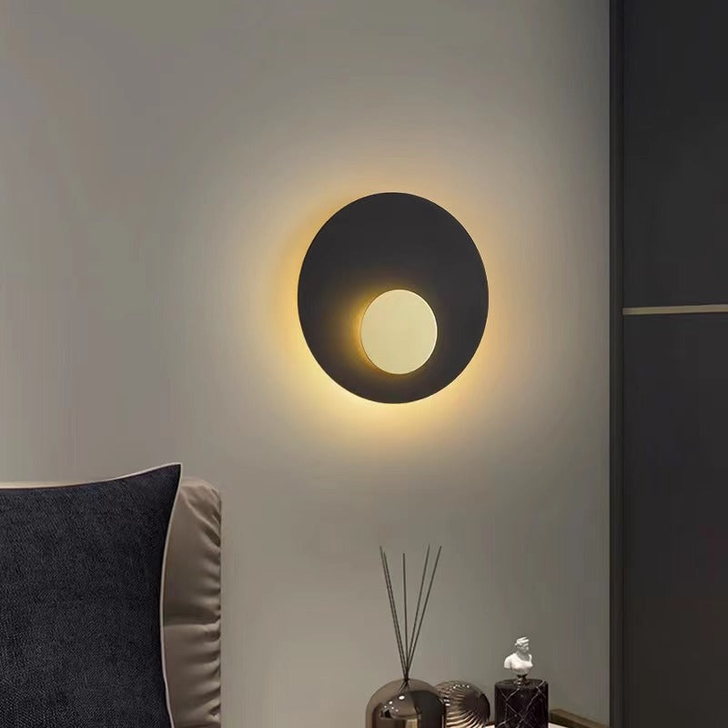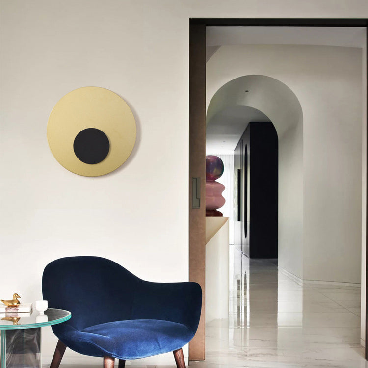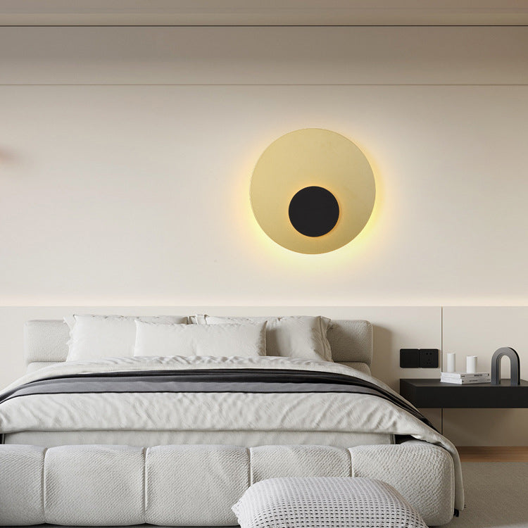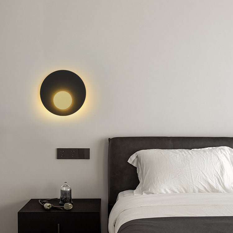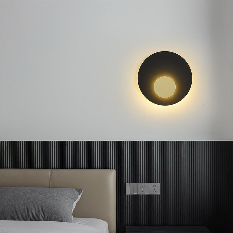 Modern Minimalist Iron Round Flat Piece LED Wall Sconce Lamp For Bedroom
