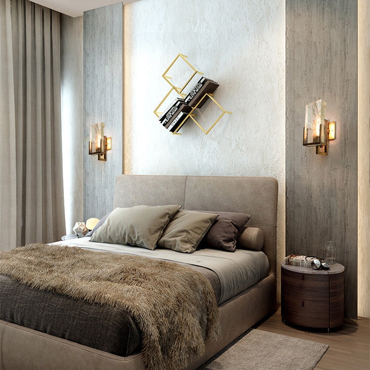 Modern Minimalist Linear Crystal Iron 1-Light Wall Sconce Lamp For Bedroom