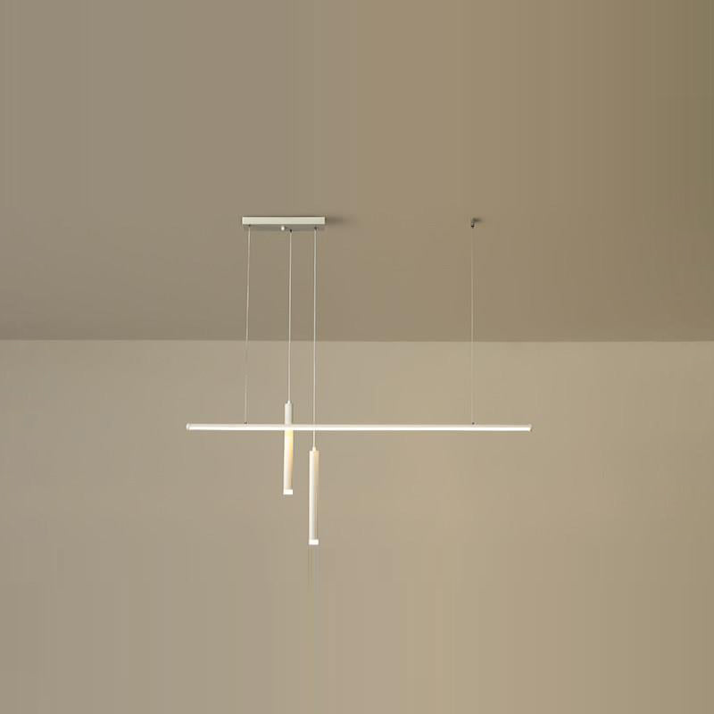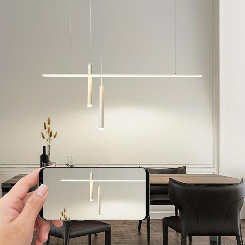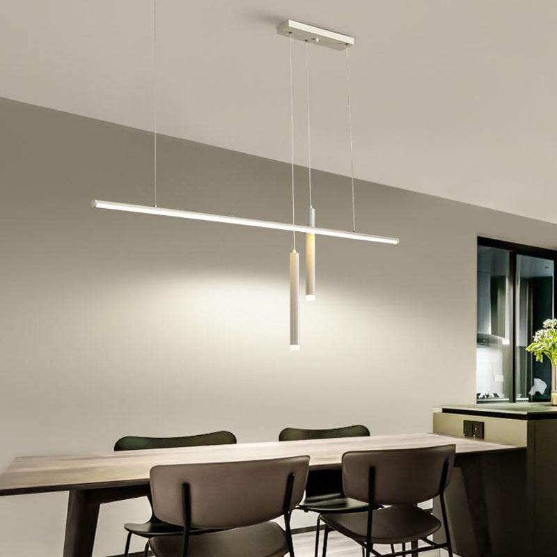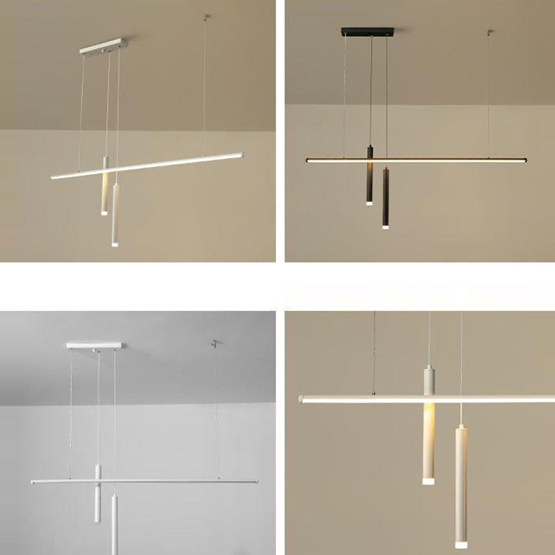 Modern Minimalist Linear Cylinder Aluminum Iron Silicone Acrylic LED Chandelier For Dining Room