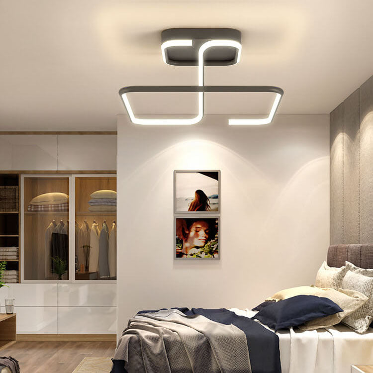 Modern Minimalist Lines Rectangular Iron Acrylic LED Flush Mount Ceiling Light