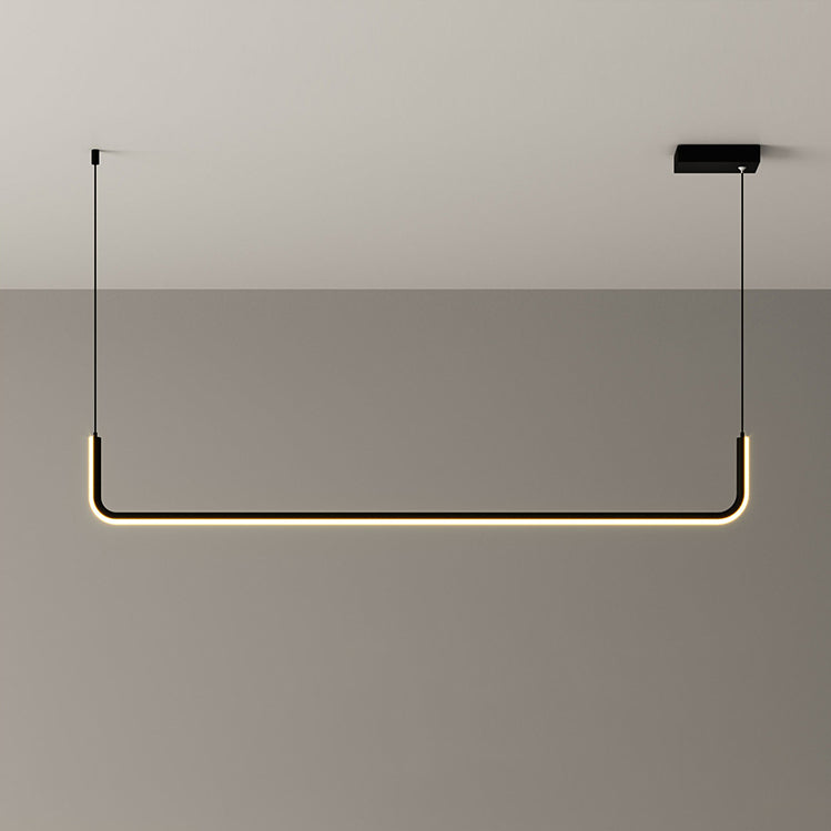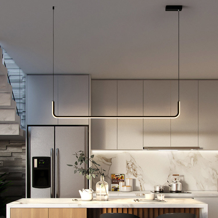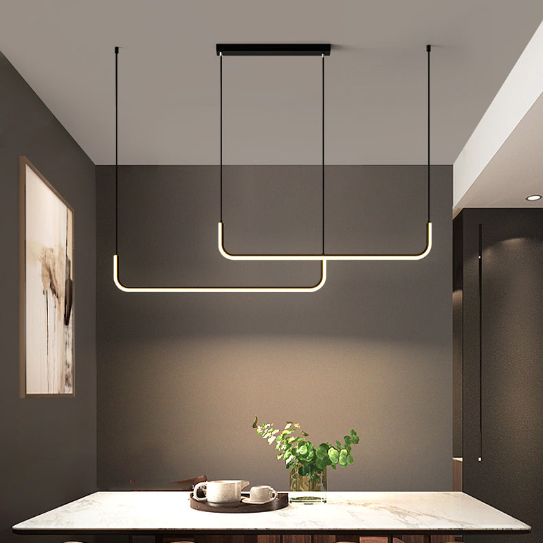 Modern Minimalist Long Strip Hardware Aluminum Silica Gel LED Island Light Chandeliers For Dining Room