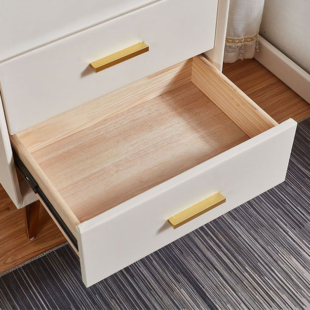 Modern Minimalist Medium-Density Fiberboard PU Leather Metal Square Nightstand With 2 Drawers For Bedroom