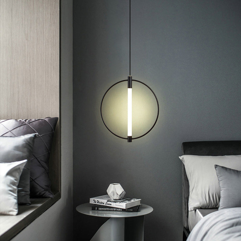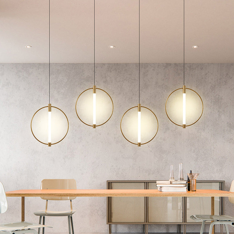 Modern Minimalist Metal And Acrylic Round LED Pendant Light For Bedroom, Living Room & Dining Area
