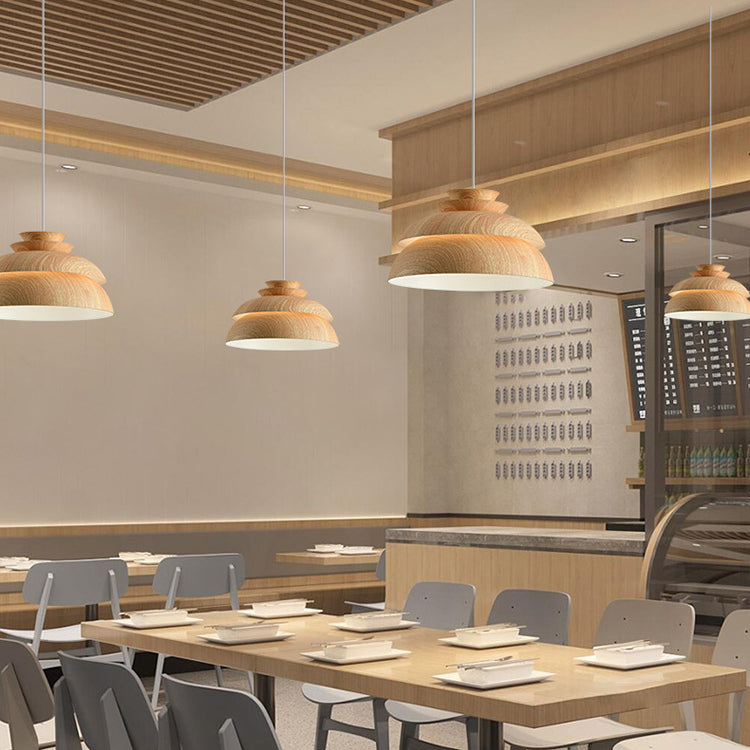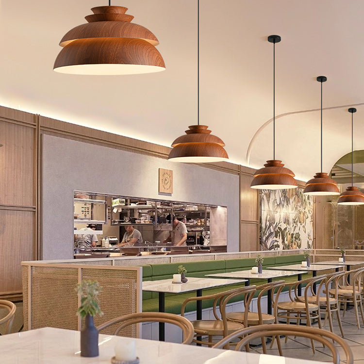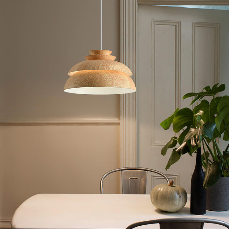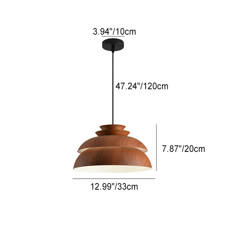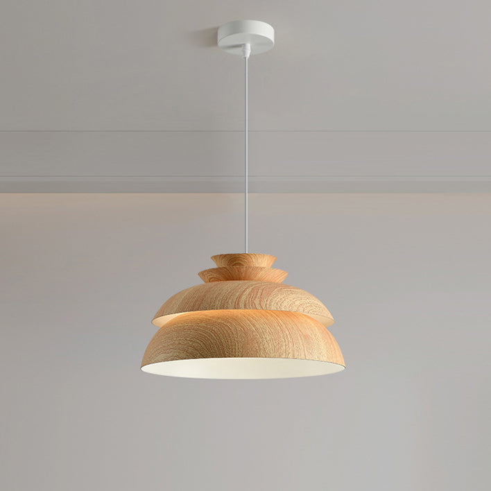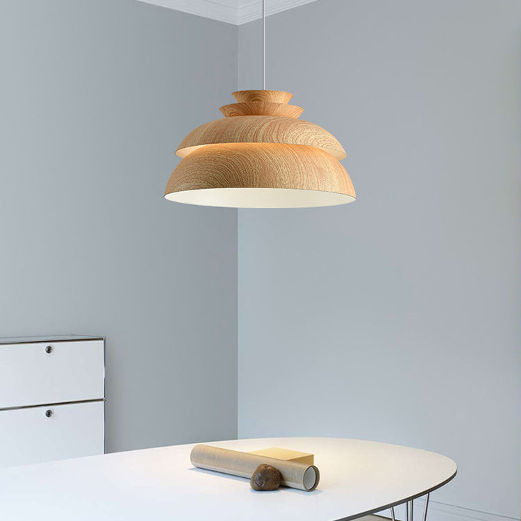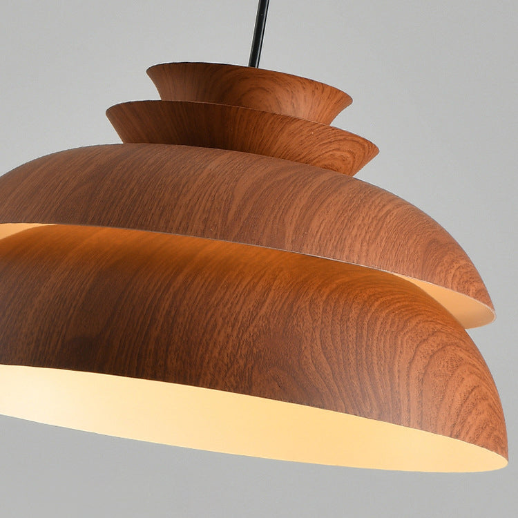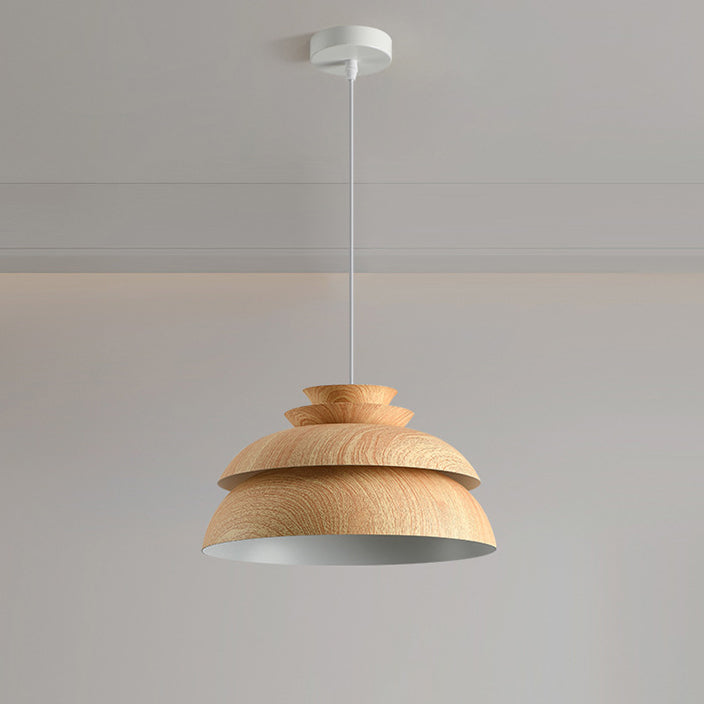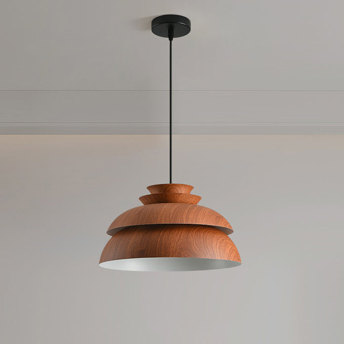 Modern Minimalist Multi-Tier Round Wood Grain Iron Shade 1-Light Pendant Light For Living Room