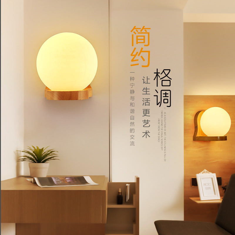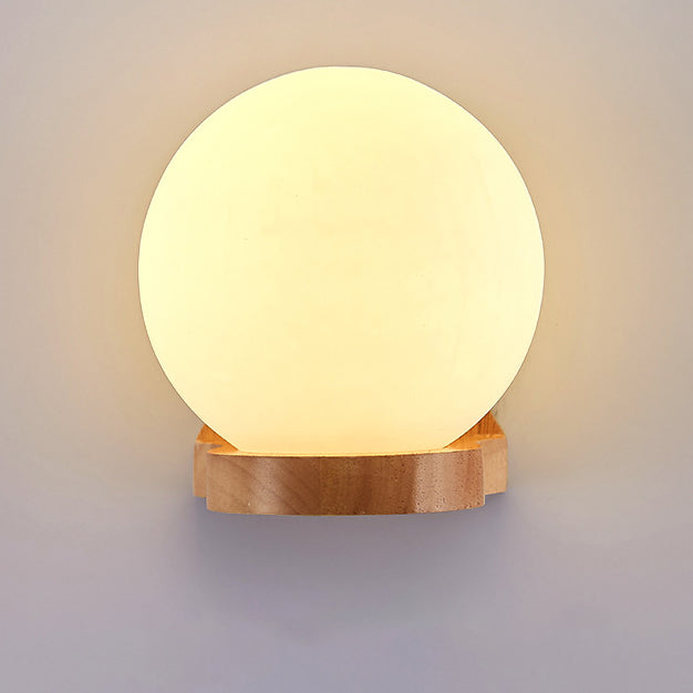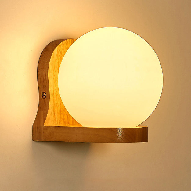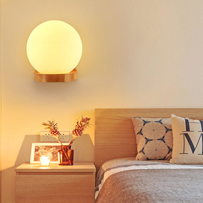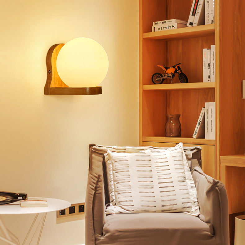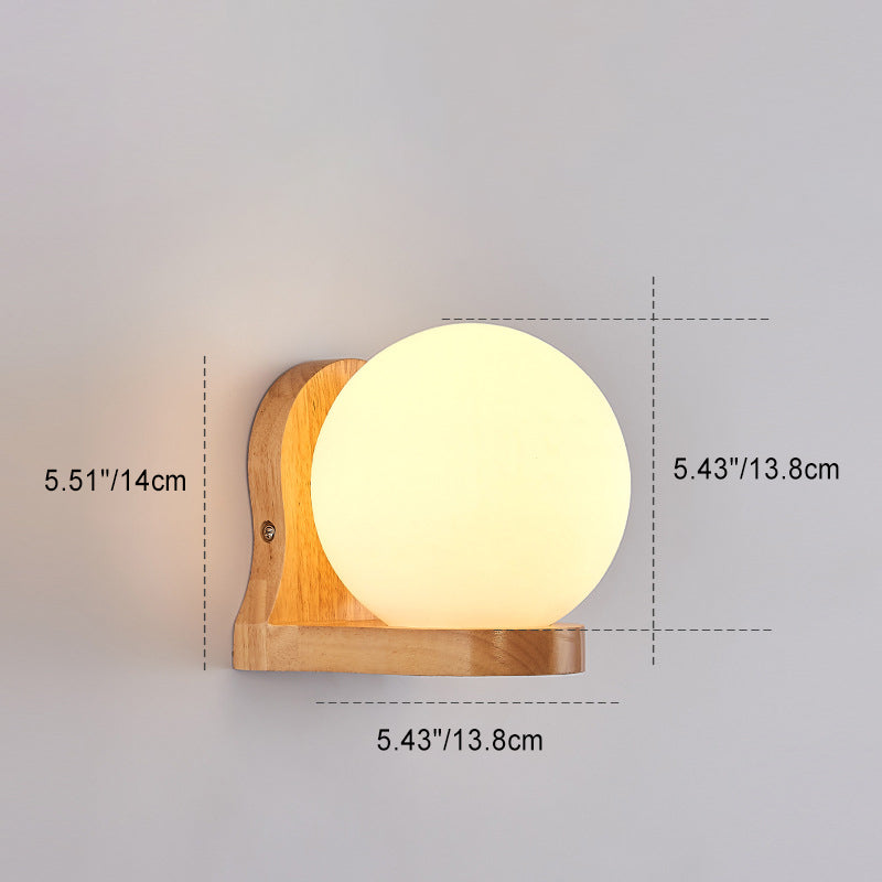 Modern Minimalist Orb Shape Wood Glass 1-Light Wall Sconce Lamp For Bedroom