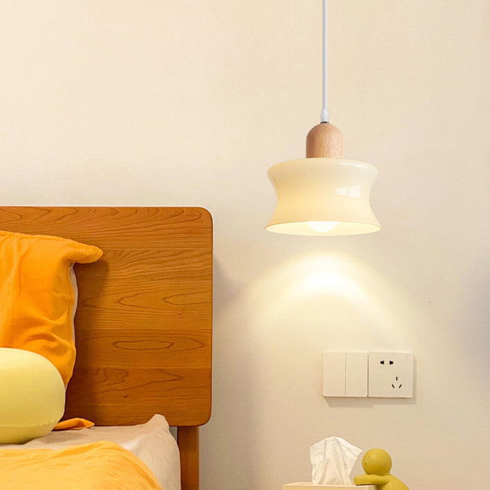Modern Minimalist Oval Wood Dome Glass Shade 1-Light Pendant Light For Living Room