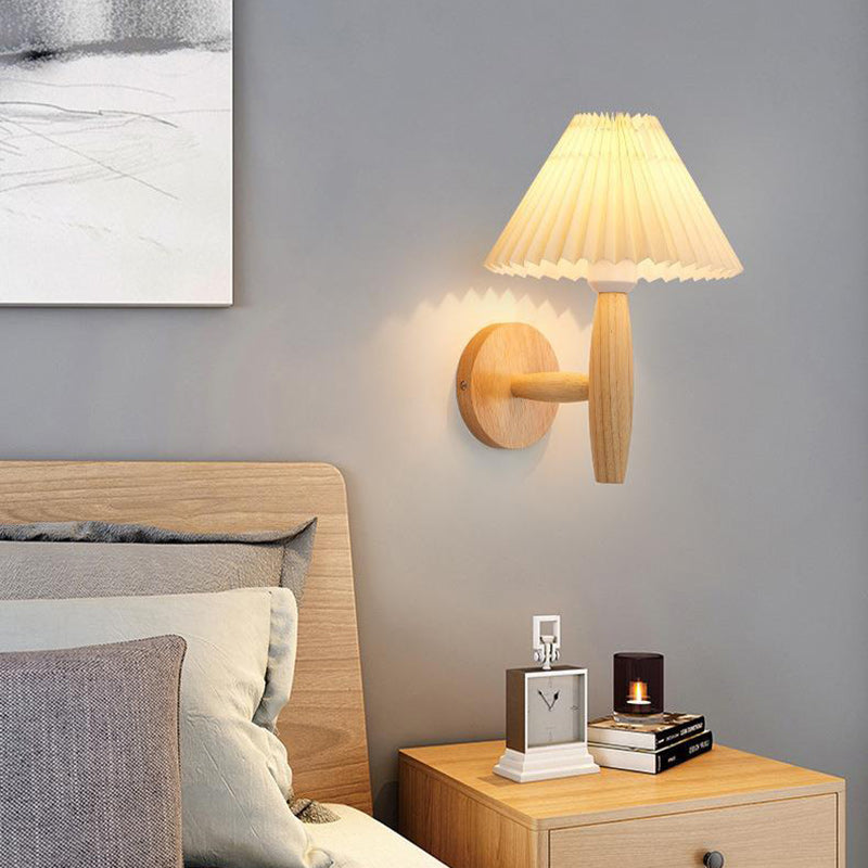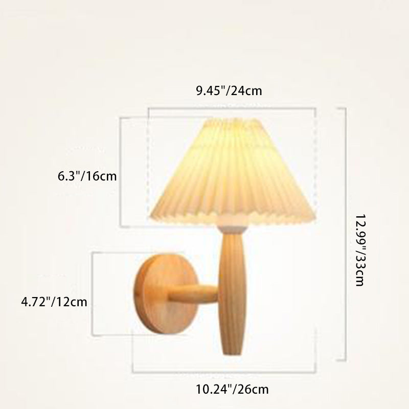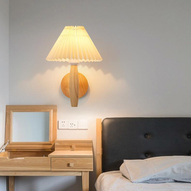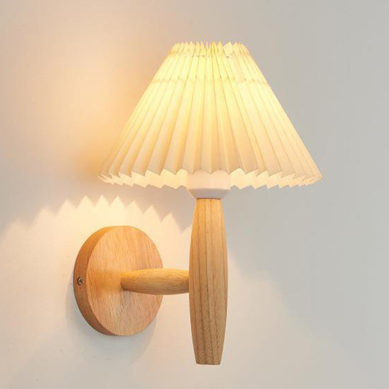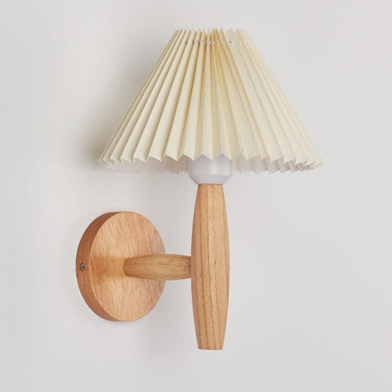 Modern Minimalist Pleated Umbrella Column Pleated Wood 1-Light Wall Sconce Lamp For Living Room