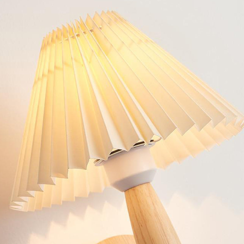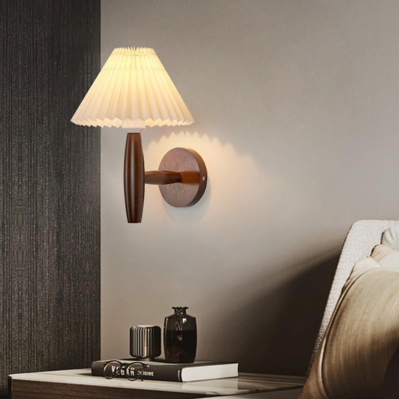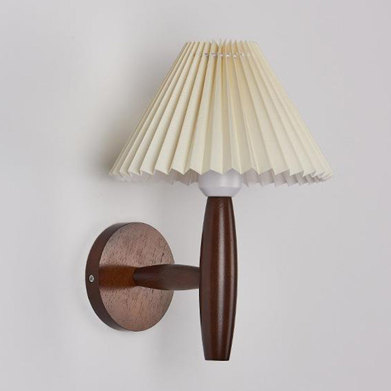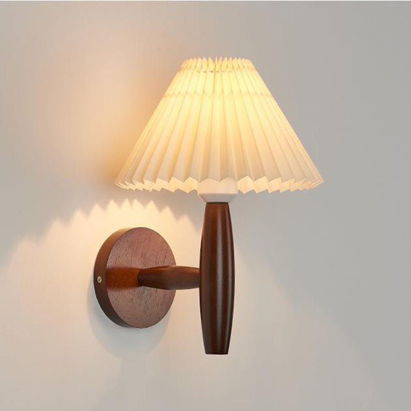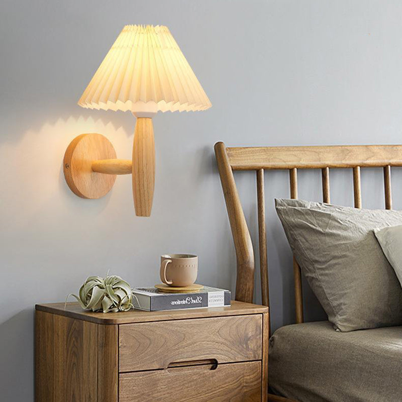 Modern Minimalist Pleated Umbrella Column Pleated Wood 1-Light Wall Sconce Lamp For Living Room