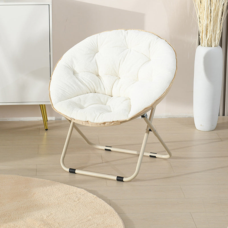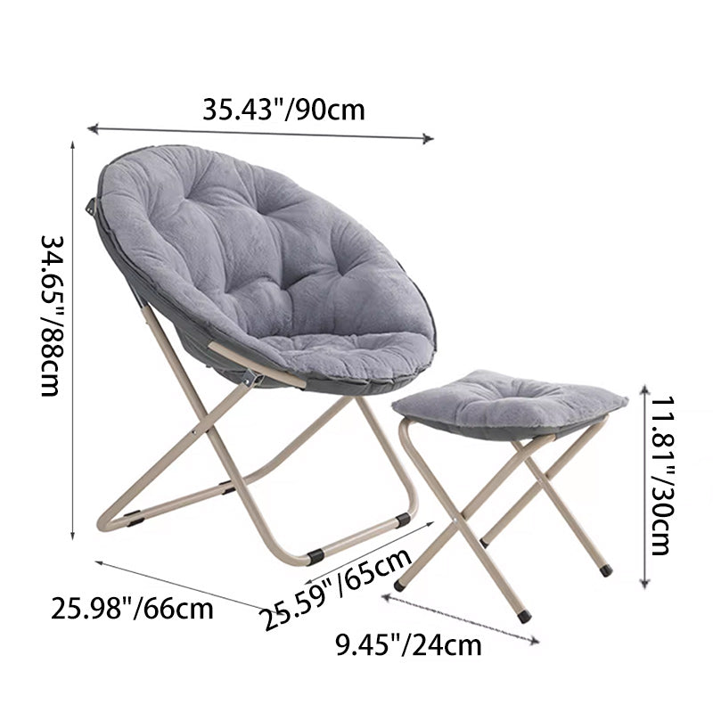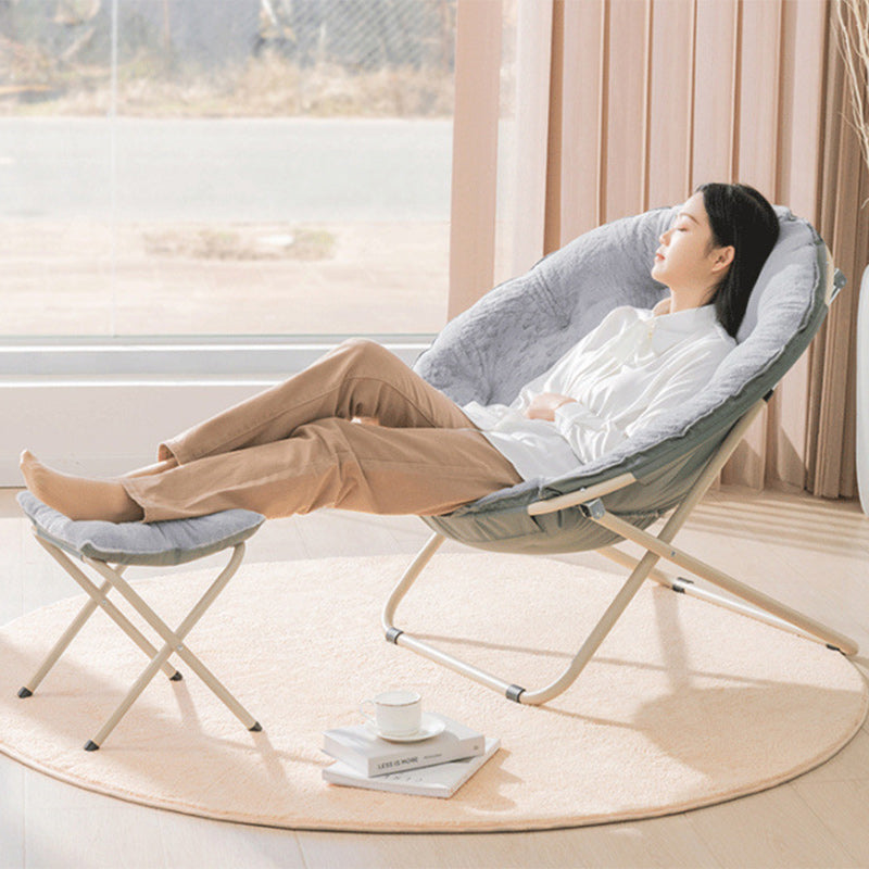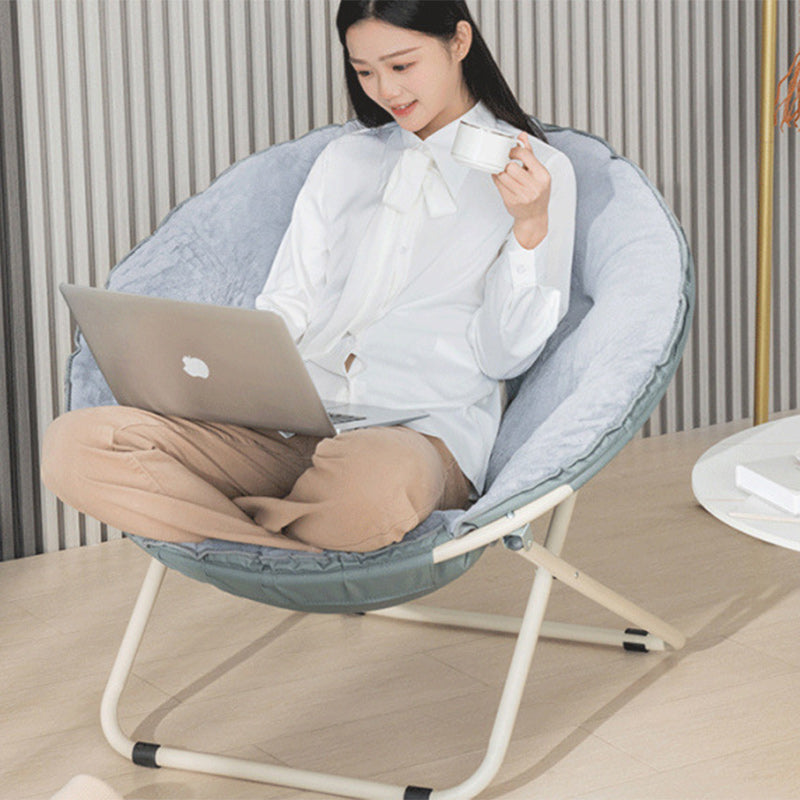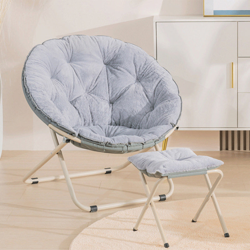 Modern Minimalist Plush Cotton Steel Round Foldable Lounge Chair With Backrest & Footrest For Living Room & Bedroom
