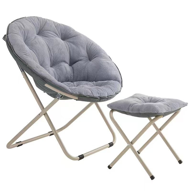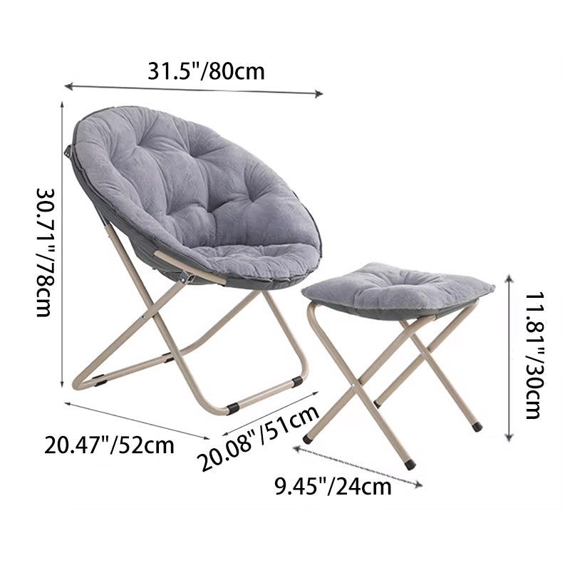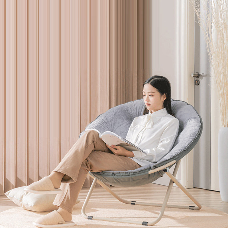 Sink into cozy comfort with this modern minimalist foldable moon chair, made with ultra-soft plush, breathable cotton padding, and a sturdy steel X-frame for reliable support up to 440 lbs. Designed with a supportive backrest and matching footrest, it’s available in white, gray, green, and pink. No installation needed—just unfold and relax. Available in two sizes, perfect for the bedroom, living room, or balcony lounging.