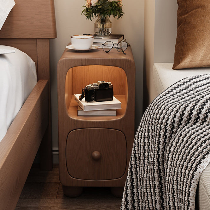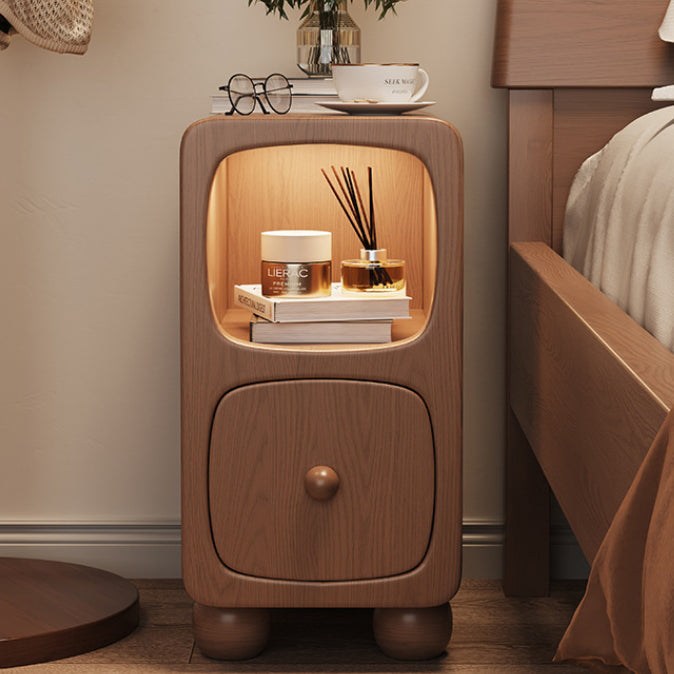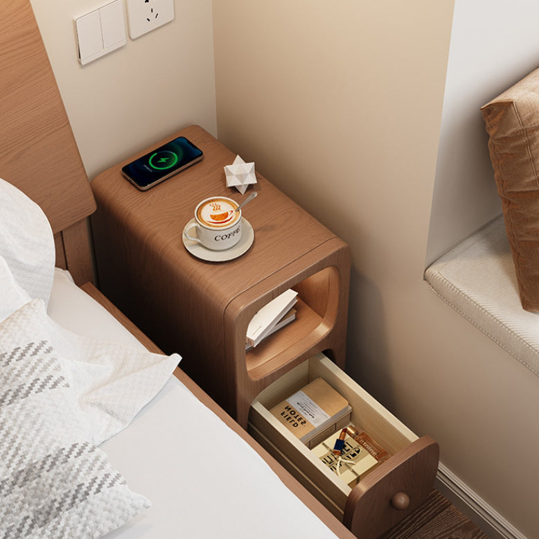 Modern Minimalist Rectangle Wood Nightstand 1-Drawer For Bedroom