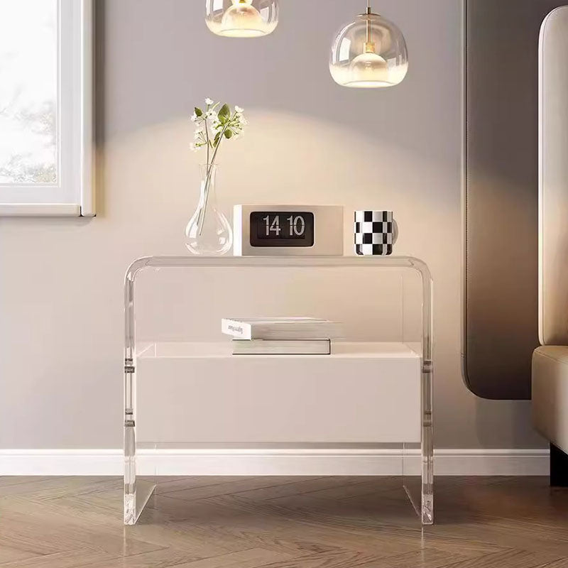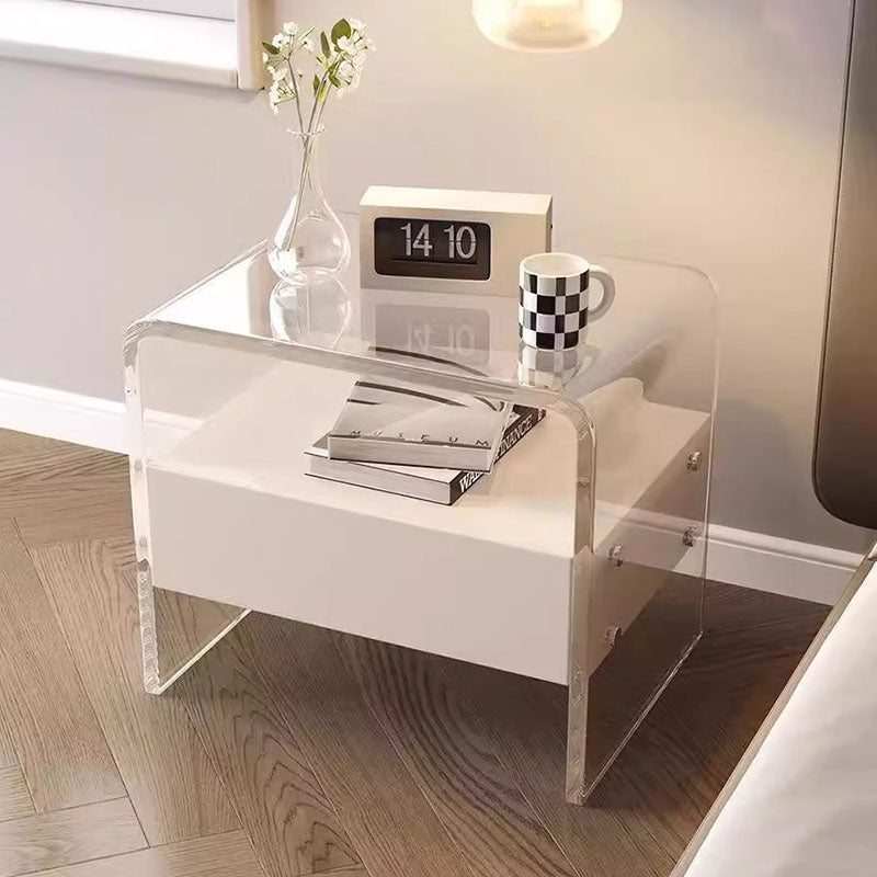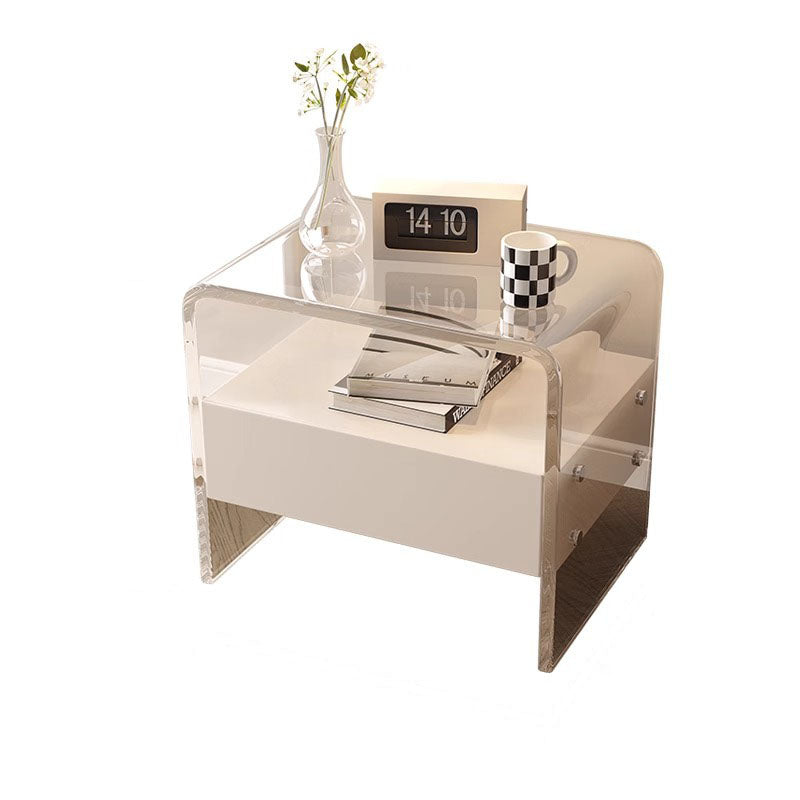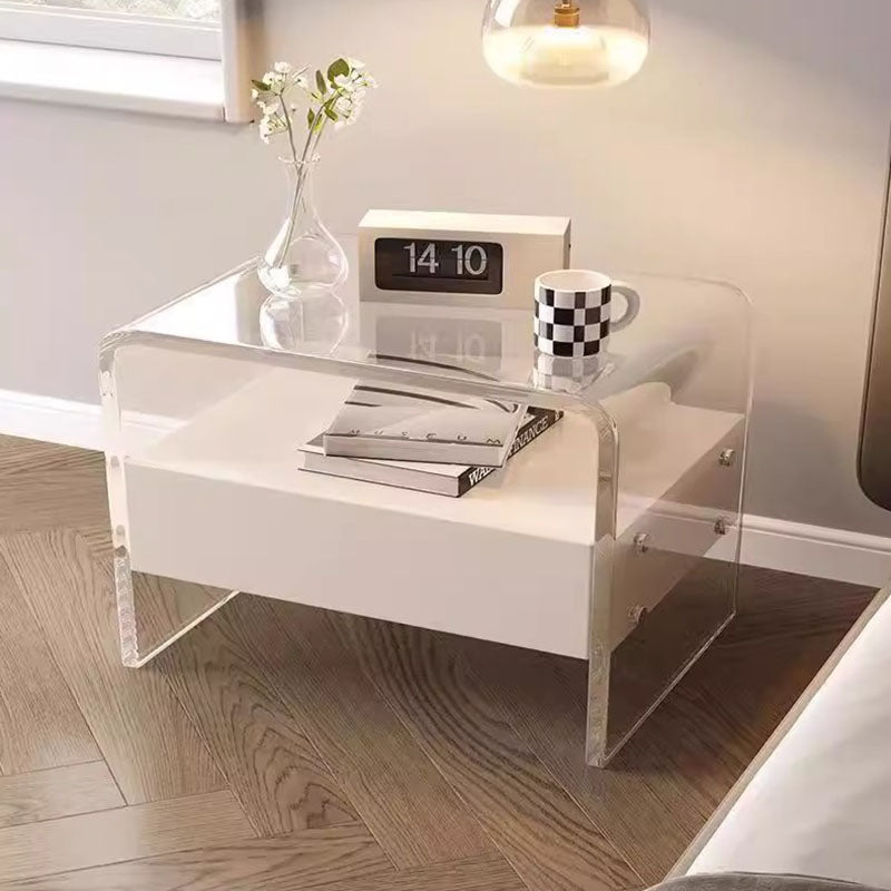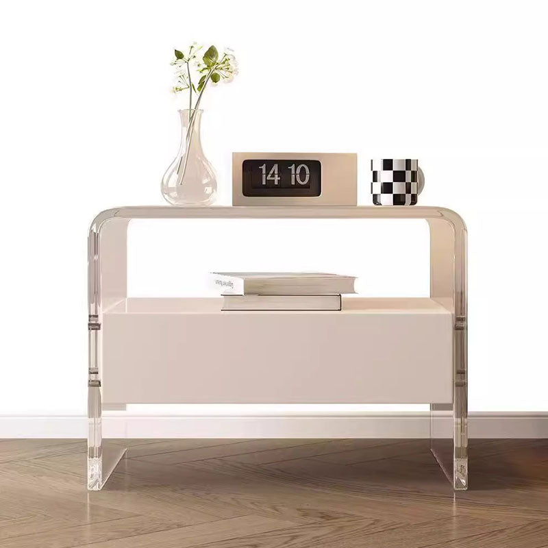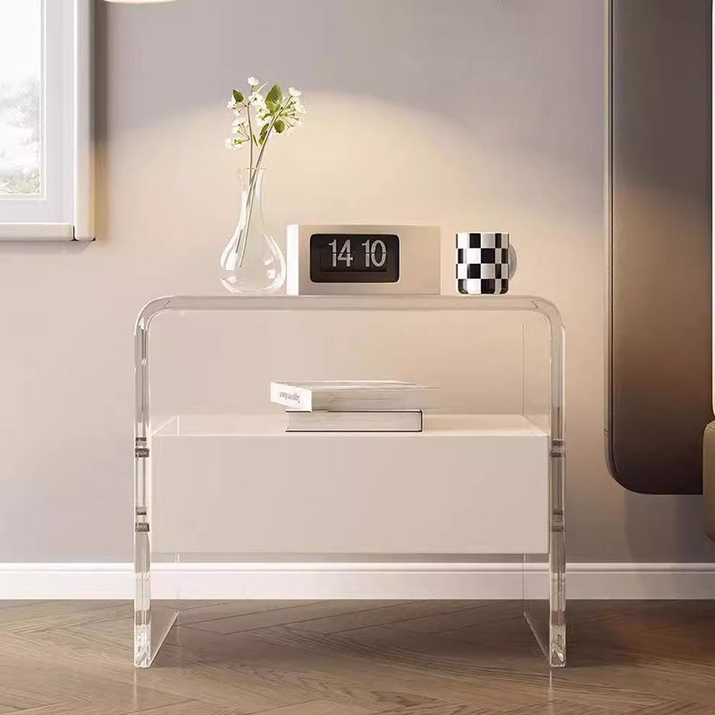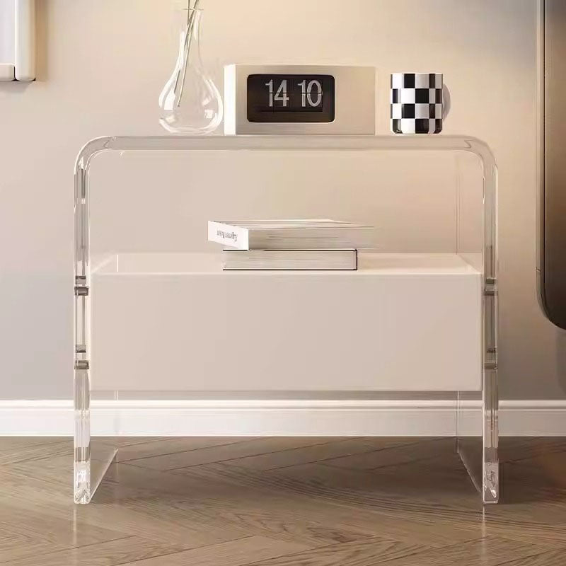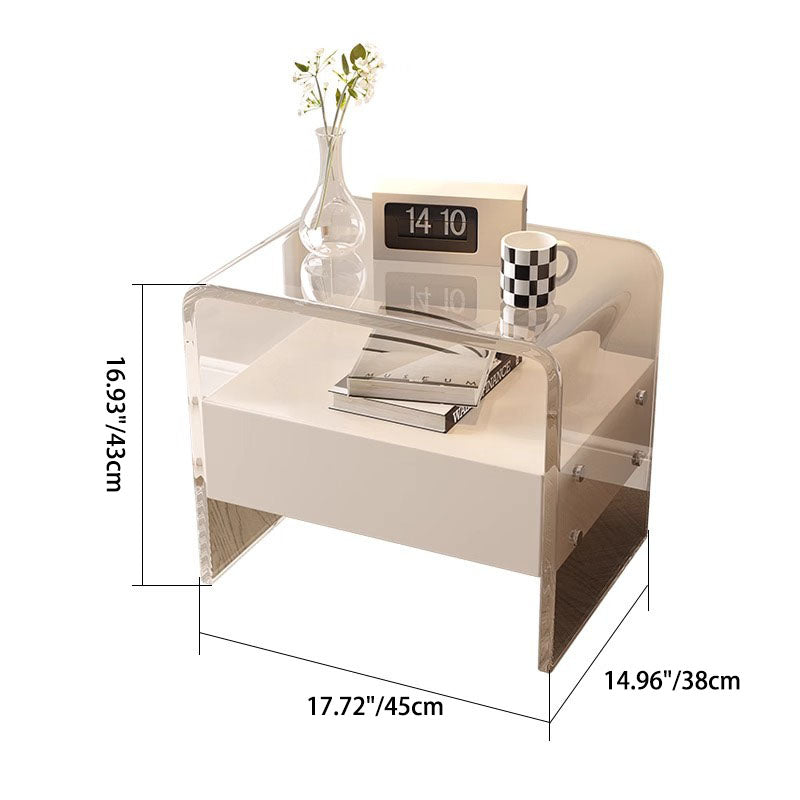 Modern Minimalist Rectangular Acrylic Wood Metal Nightstand 1-Shelf For Bedroom