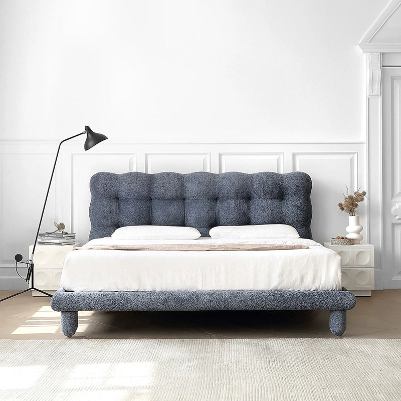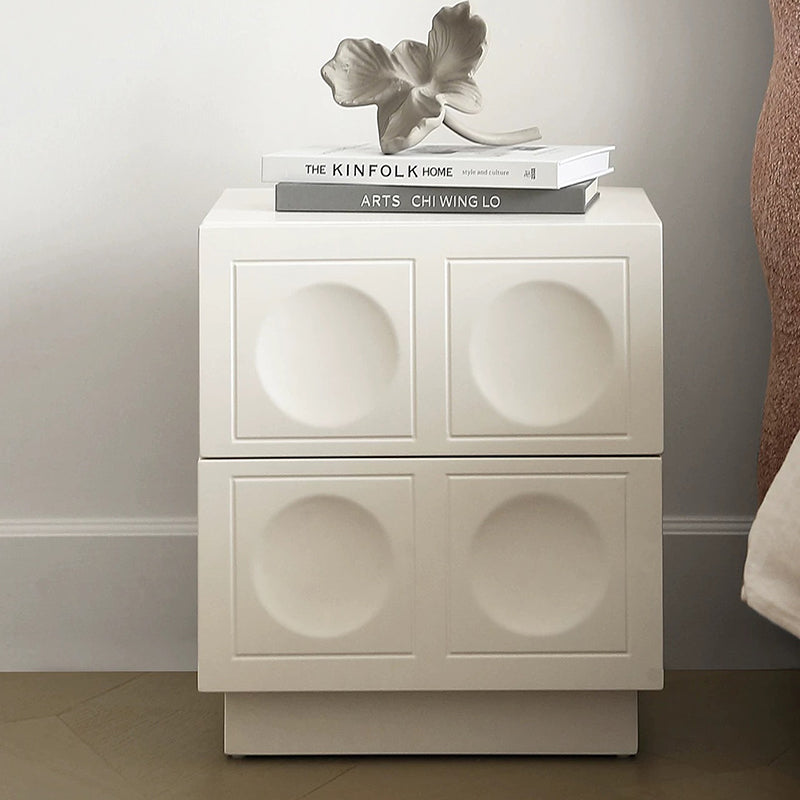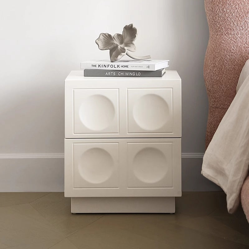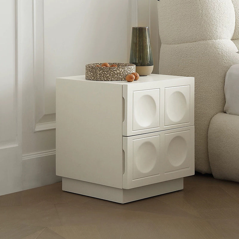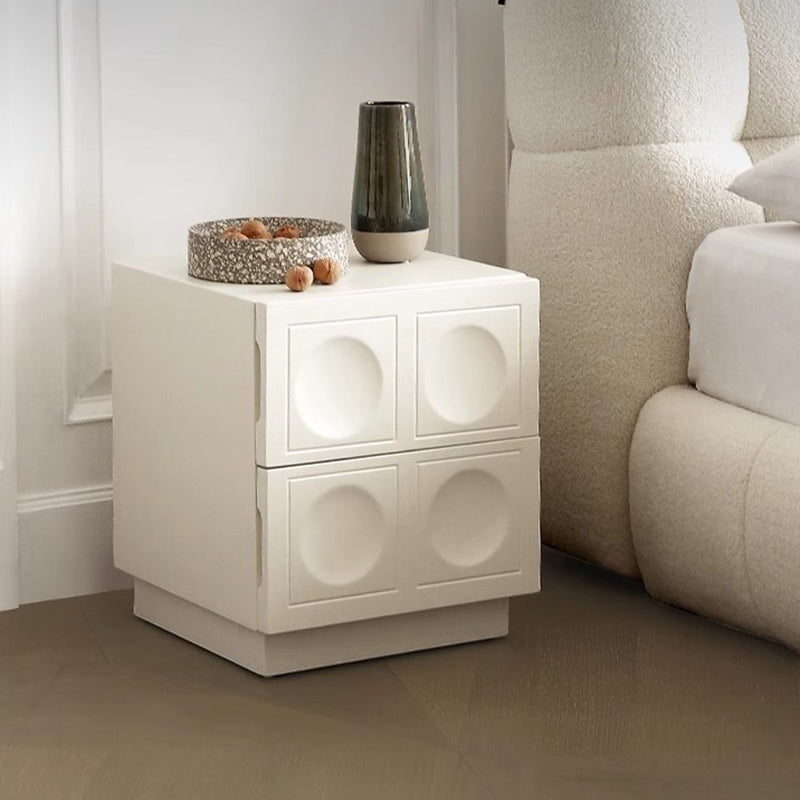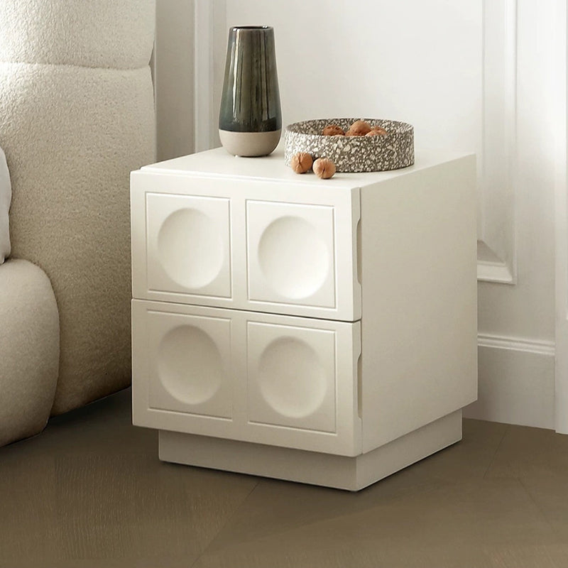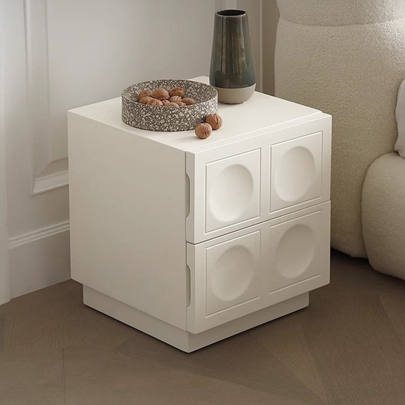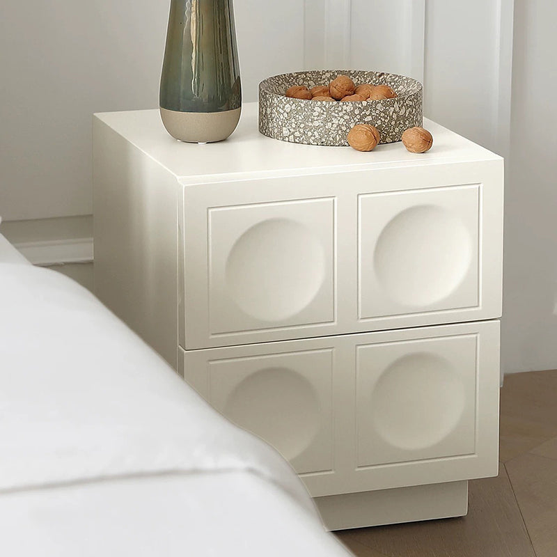 Modern Minimalist Rectangular Concave Round Density Board Hardware Nightstand 2-Drawer For Bedroom