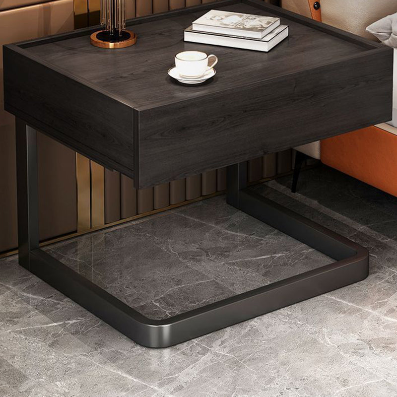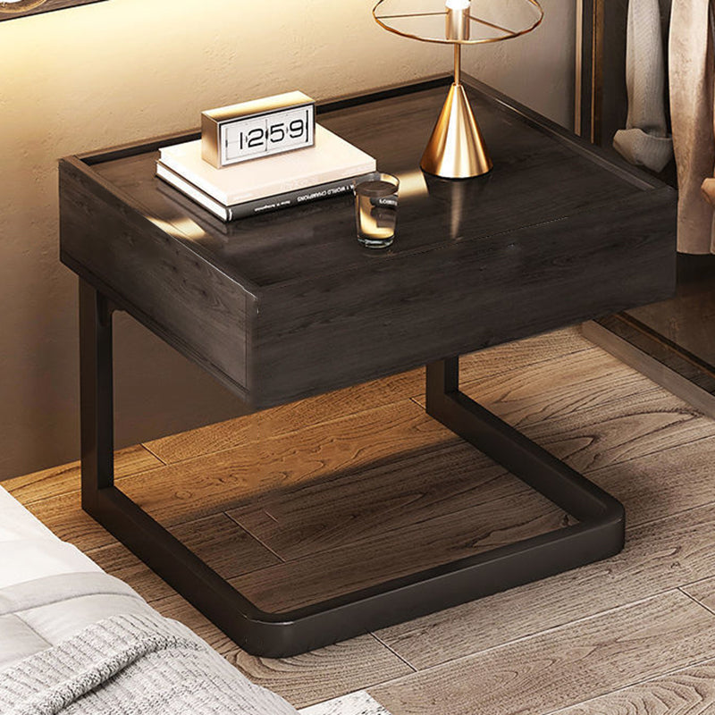 Modern Minimalist Rectangular Faux Panel Tubing Nightstand 1-Drawer For Bedroom