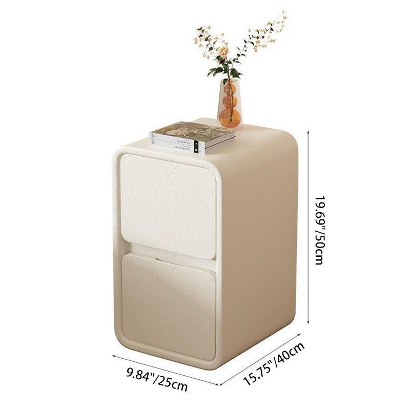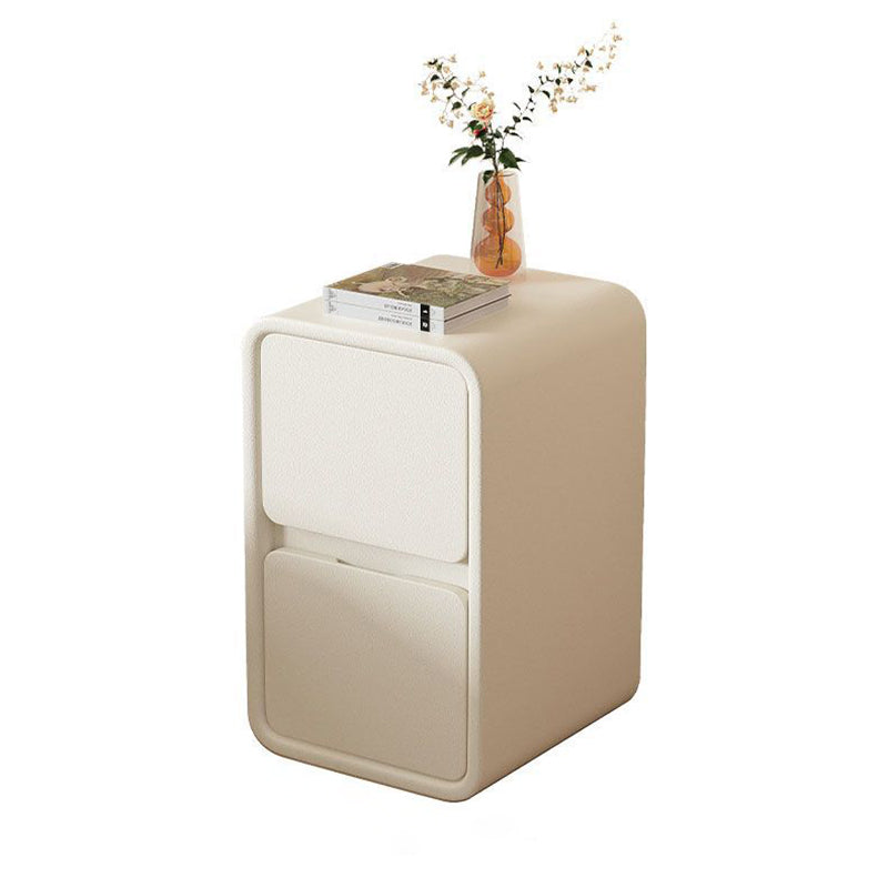 Modern Minimalist Rectangular Microfiber Leather Slab Nightstand 2-Drawer For Bedroom