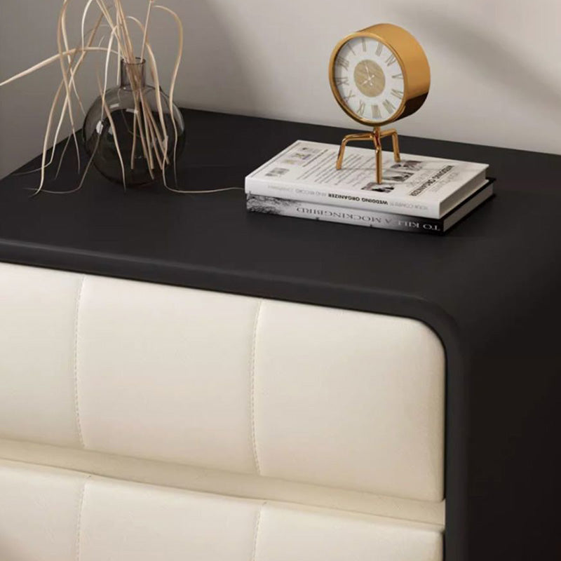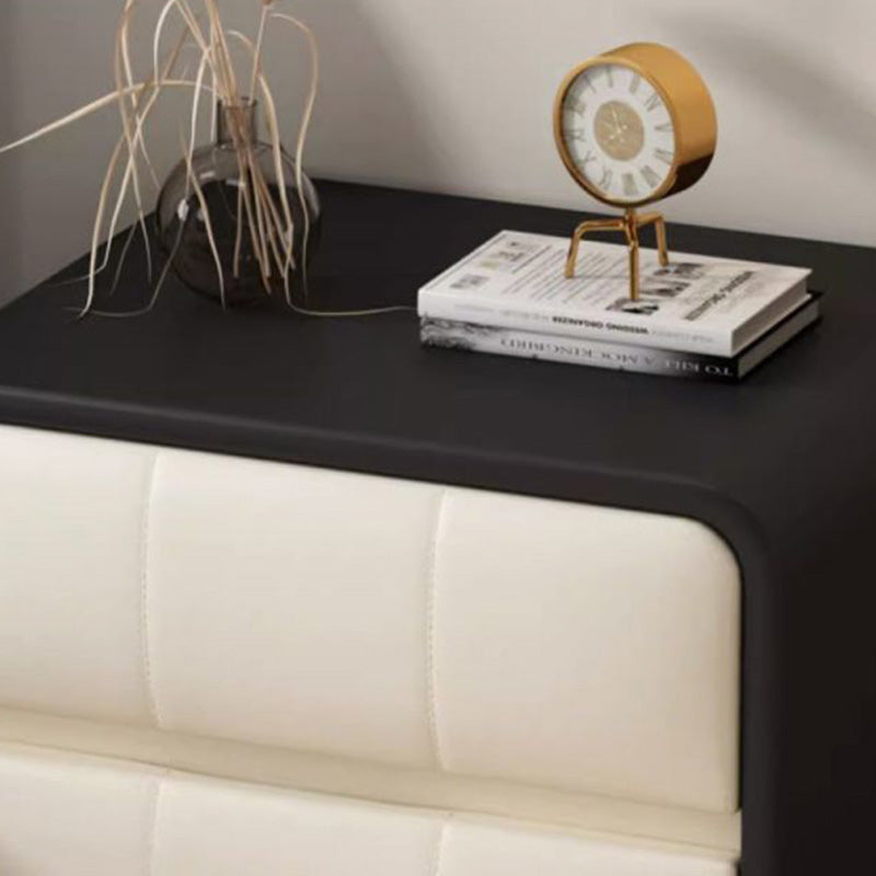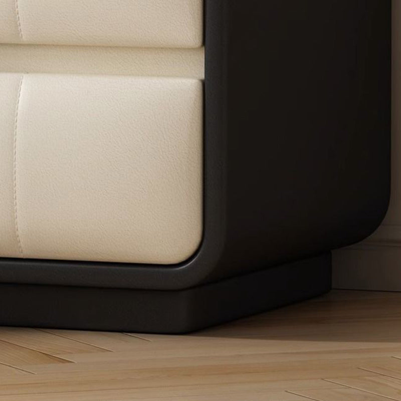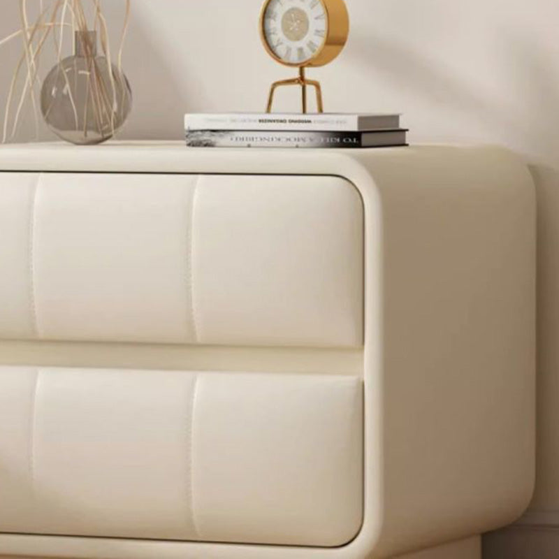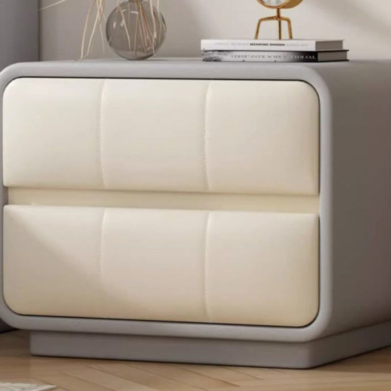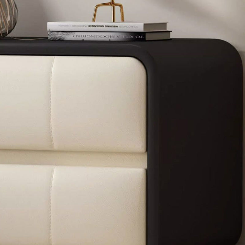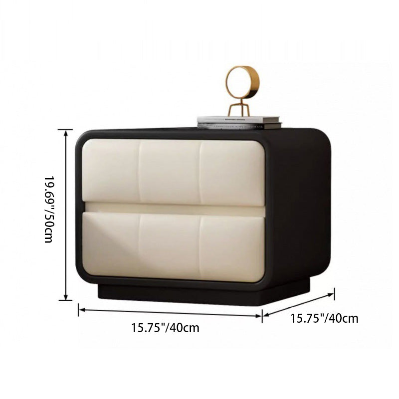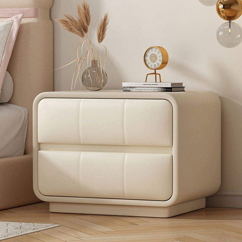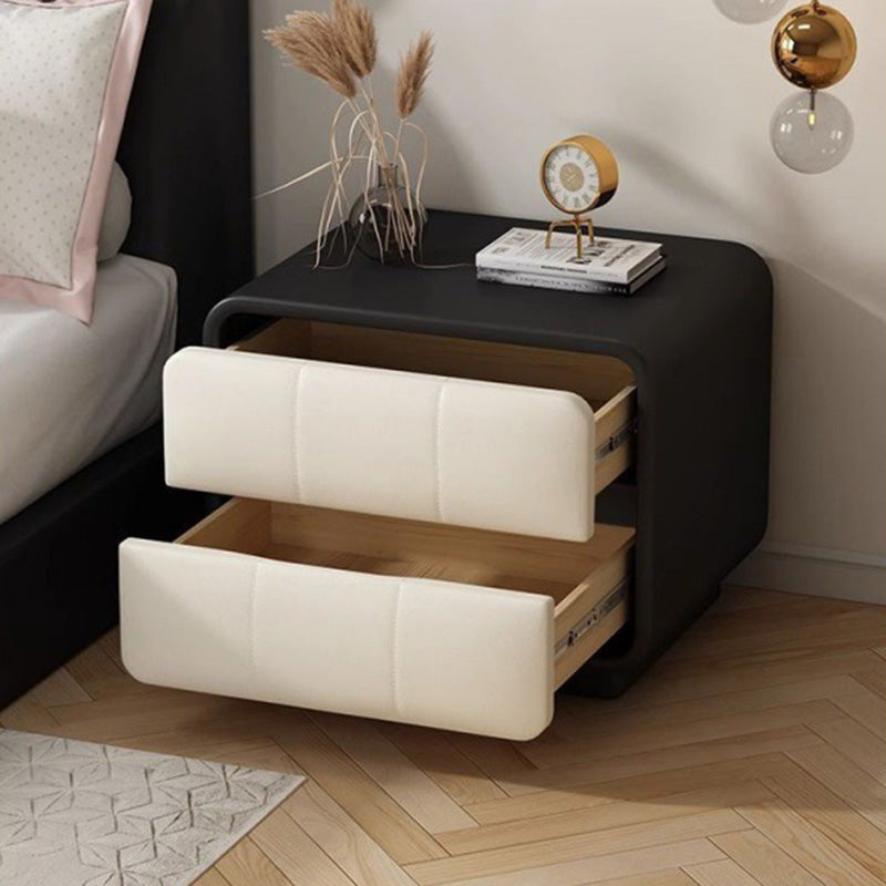 Modern Minimalist Rectangular Round Corner Microfiber Leather Wooden Nightstand 2-Drawer For Bedroom