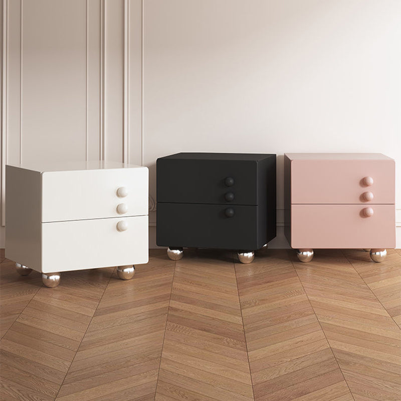 Modern Minimalist Rectangular Solid Wood High Density Panel Stainless Steel Nightstand 2-Drawer For Bedroom