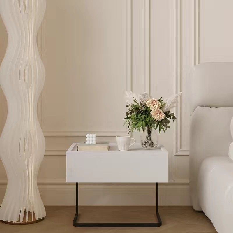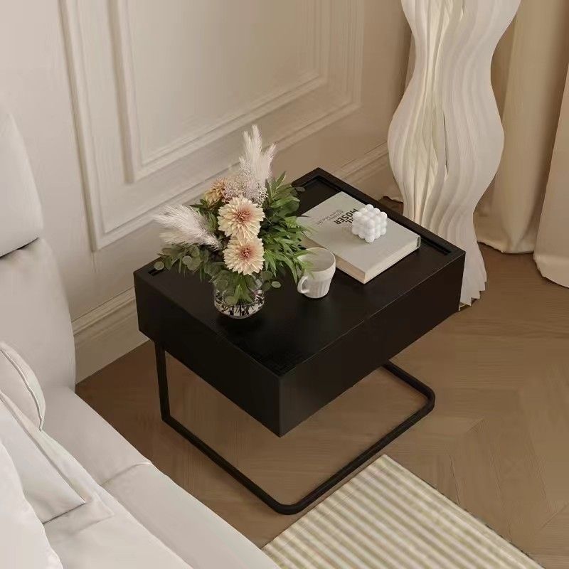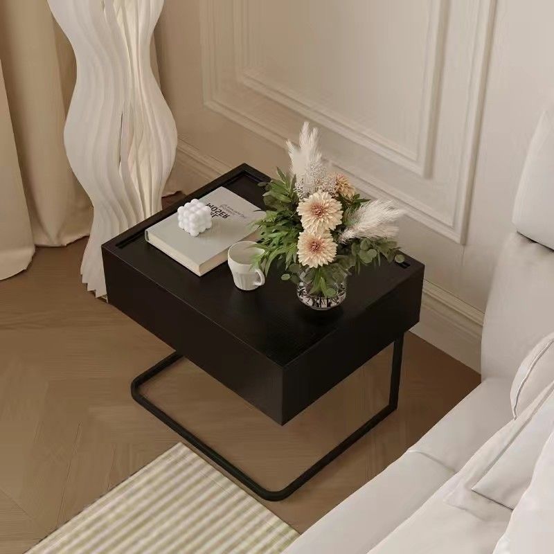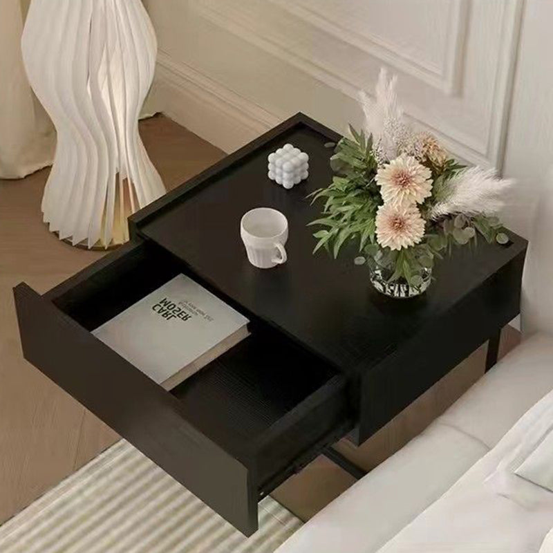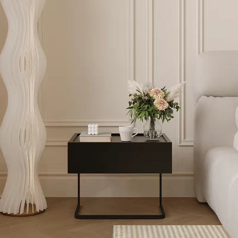 Modern Minimalist Rectangular Solid Wood Iron Nightstand 1-Drawer For Bedroom