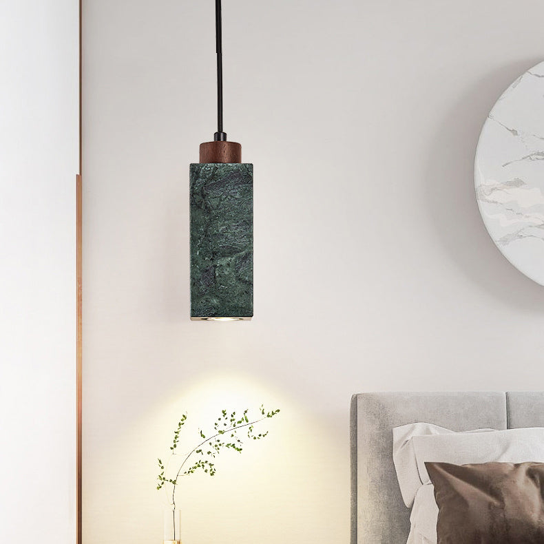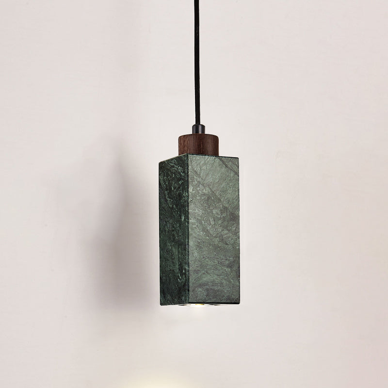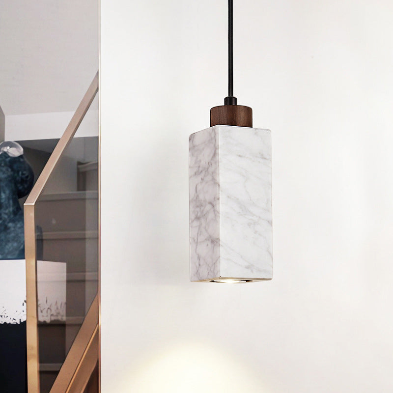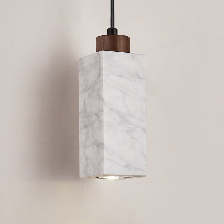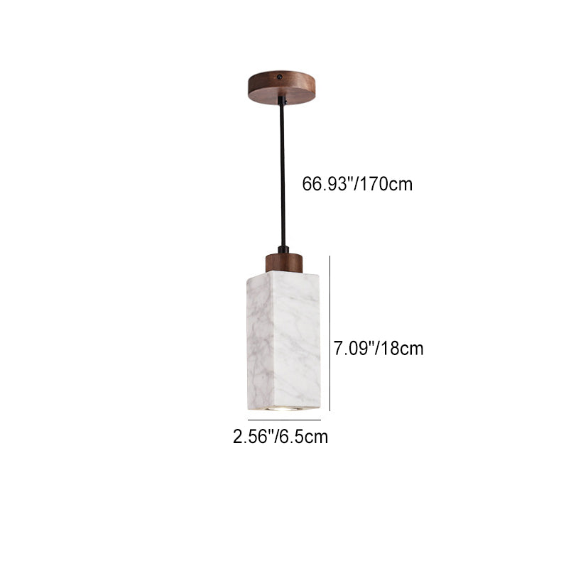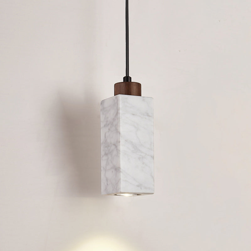 Modern Minimalist Rectangular Solid Wood Marble 1-Light Pendant Light For Bedroom