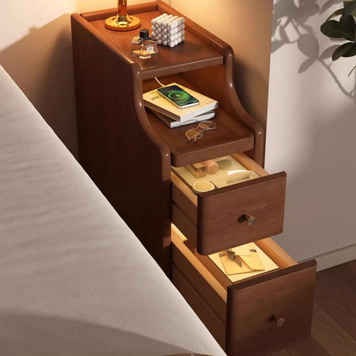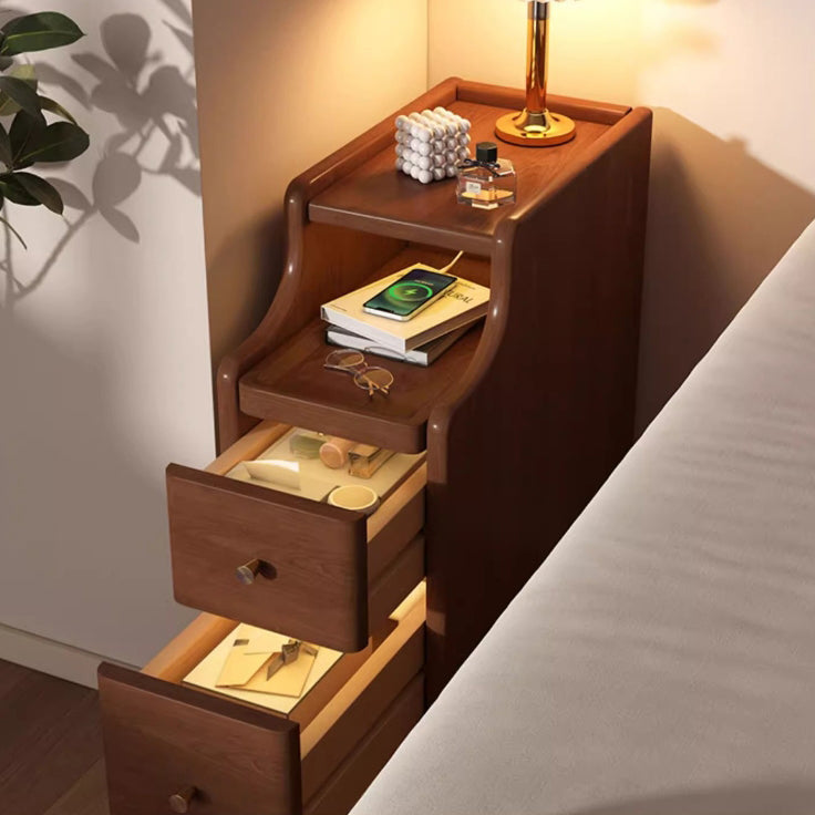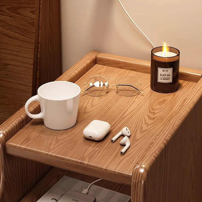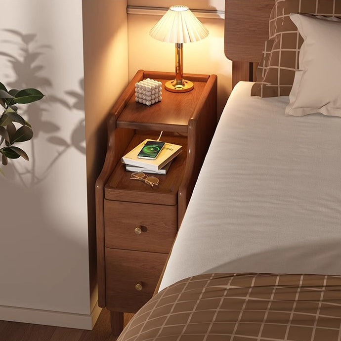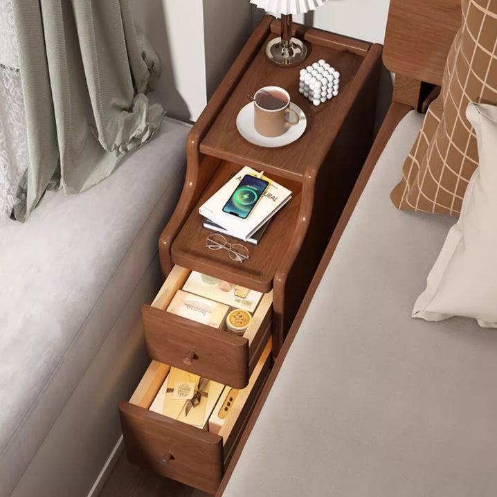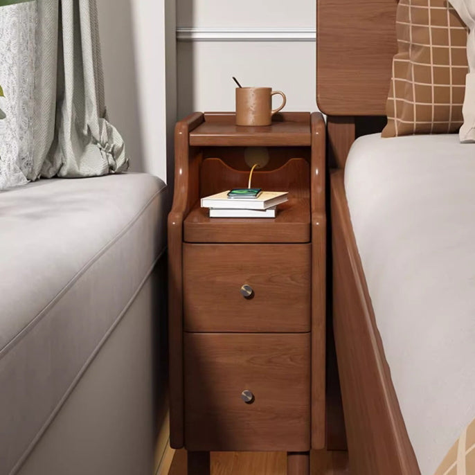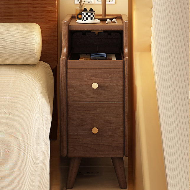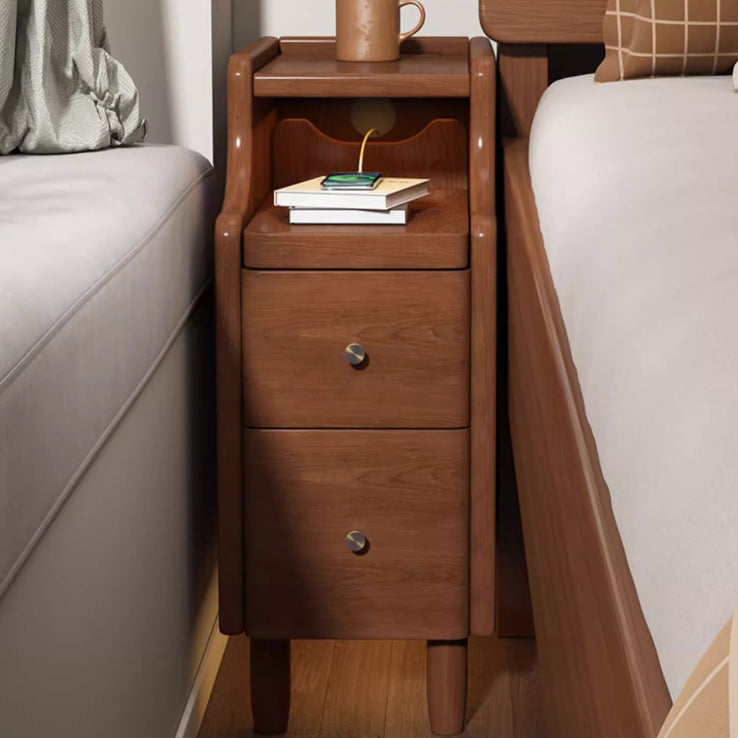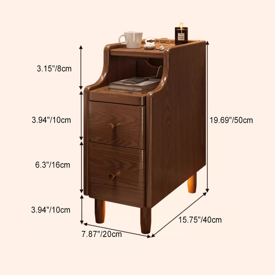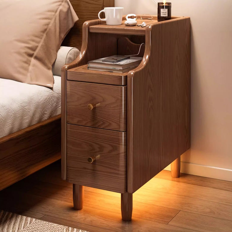Modern Minimalist Rectangular Solid Wood Nightstand 2-Drawer For Bedroom