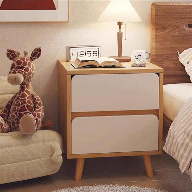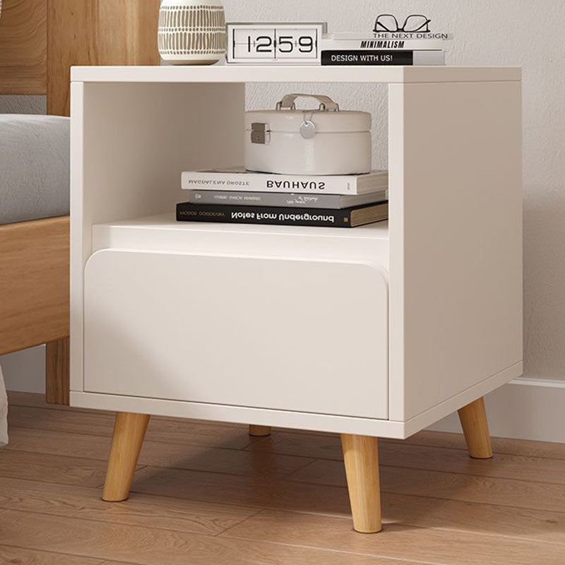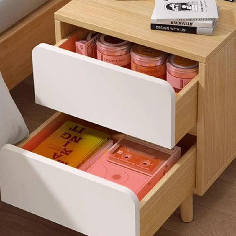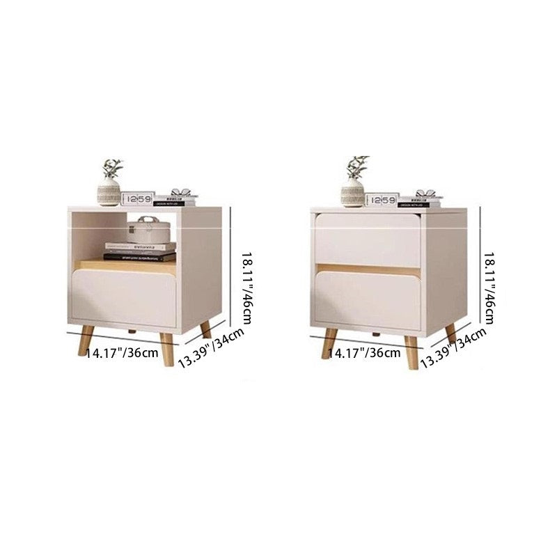 Modern Minimalist Rectangular Solid Wood Panel Nightstand 1/2 Drawer For Bedroom