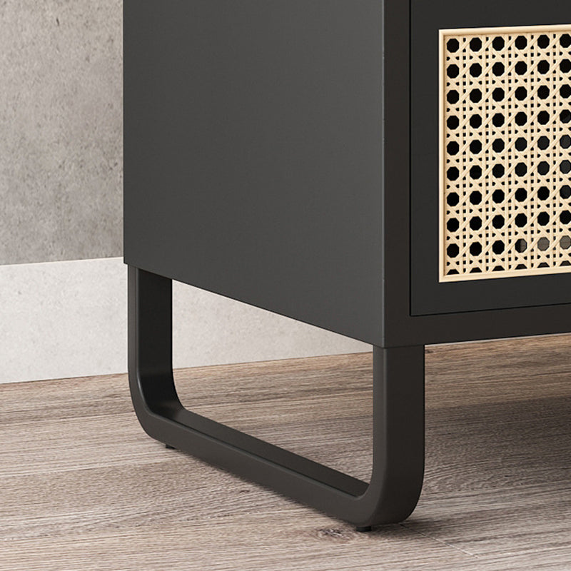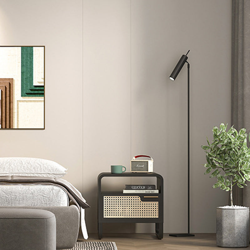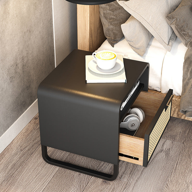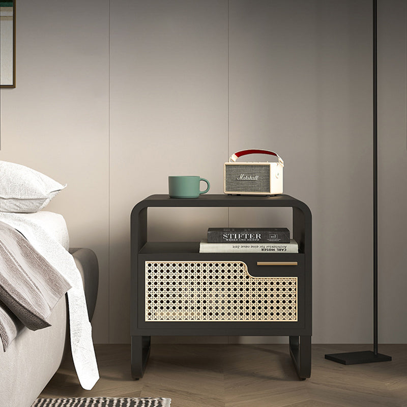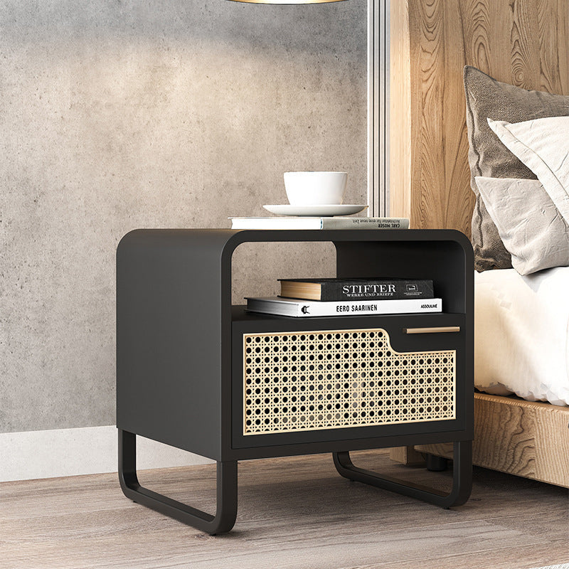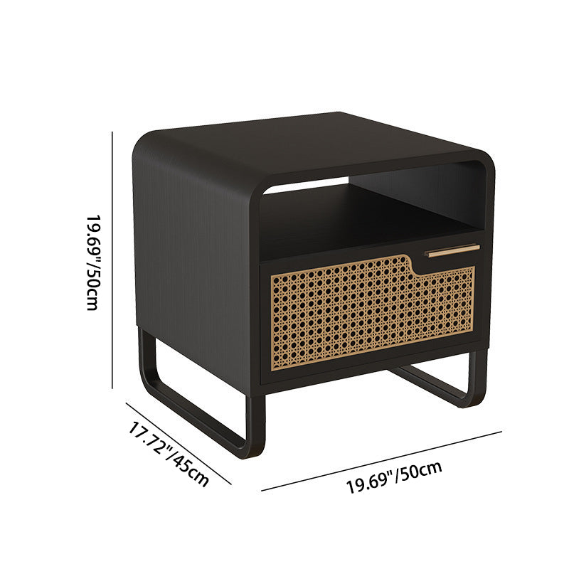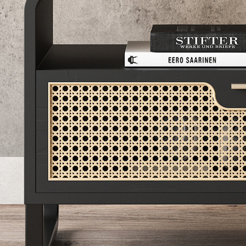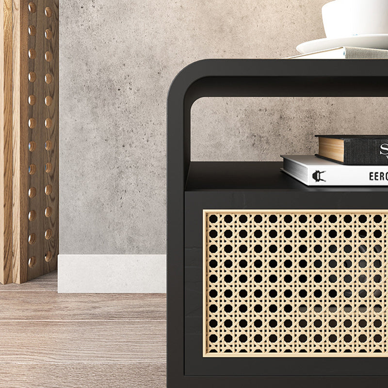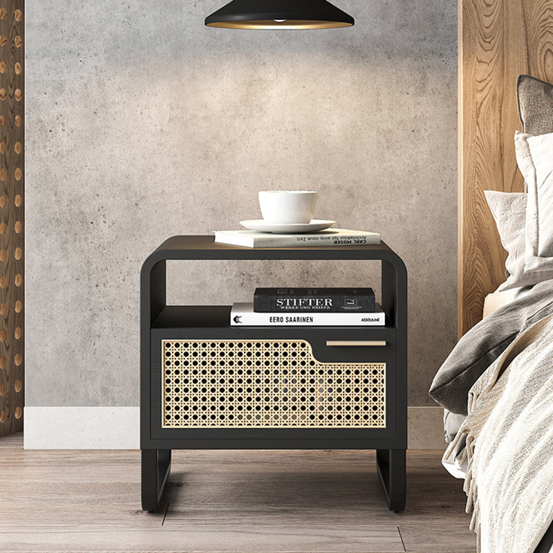 Modern Minimalist Rectangular Solid Wood Rattan Nightstand 1-Drawer For Bedroom