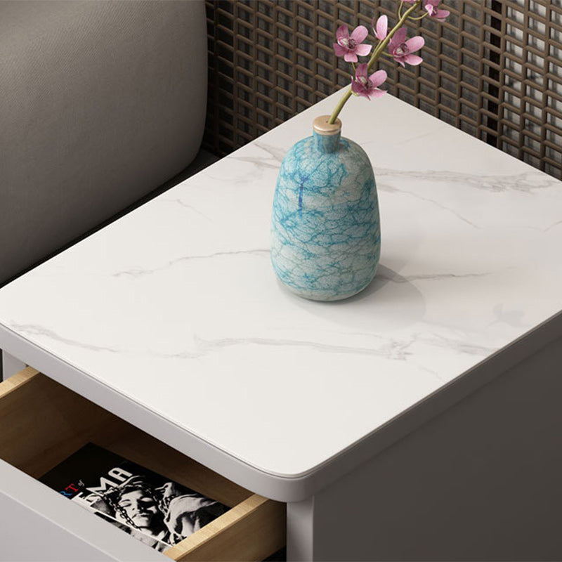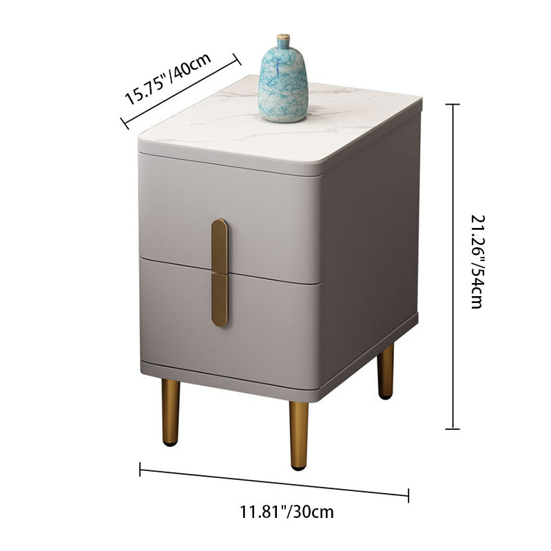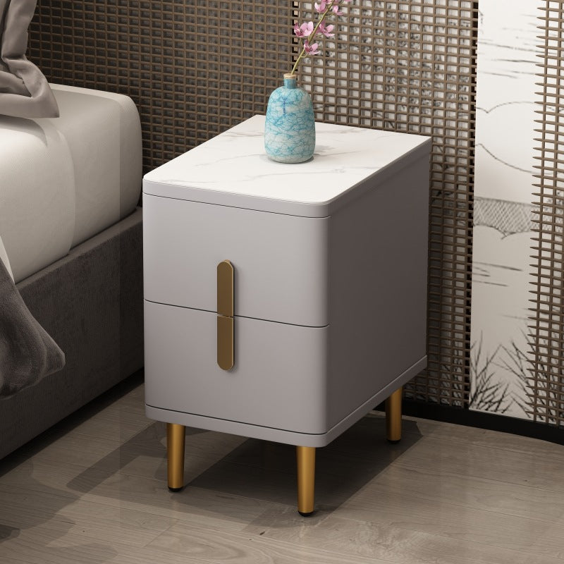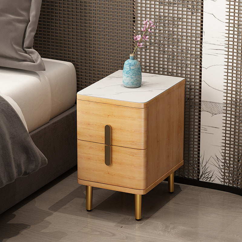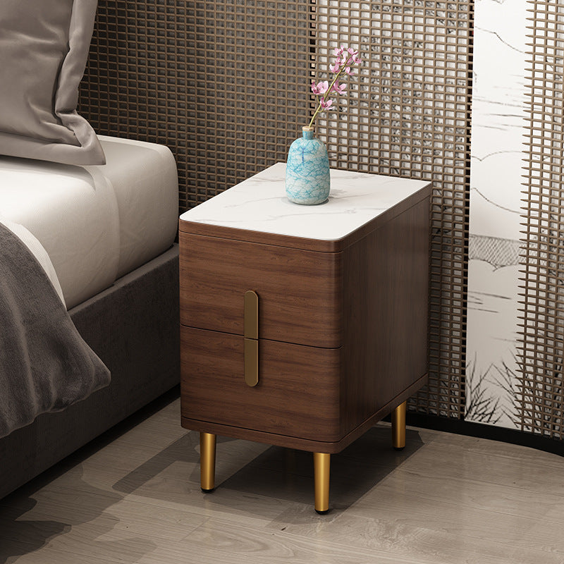 Modern Minimalist Rectangular Square Marble Solid Wood Nightstand 2-Drawer For Bedroom