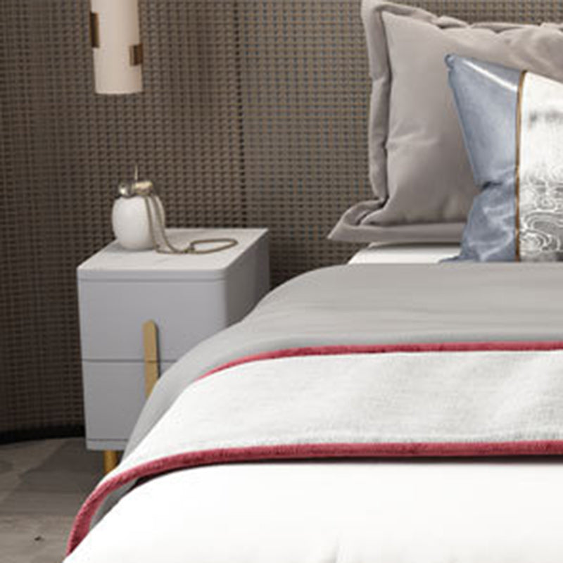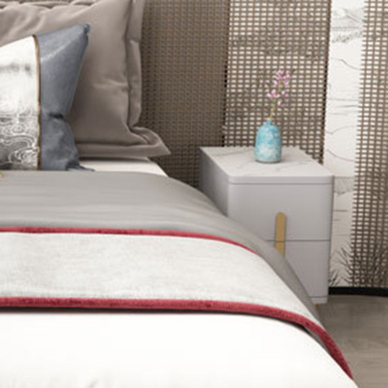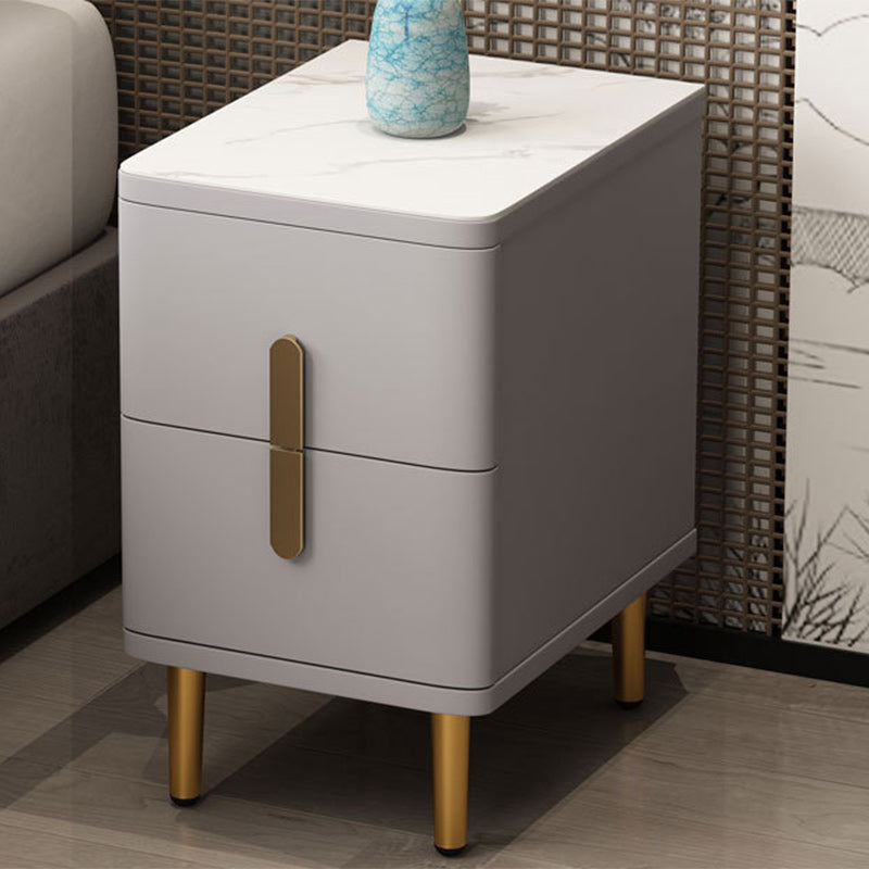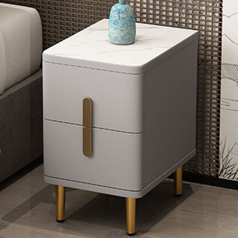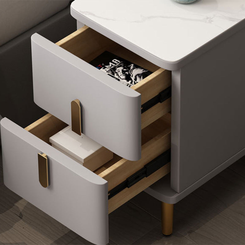 Modern Minimalist Rectangular Square Marble Solid Wood Nightstand 2-Drawer For Bedroom