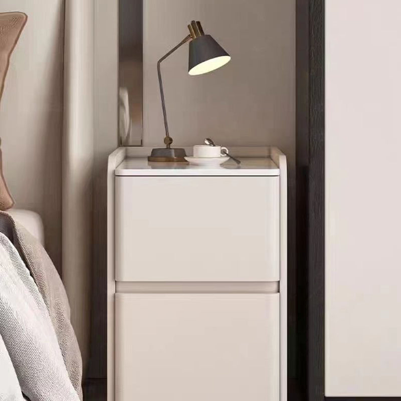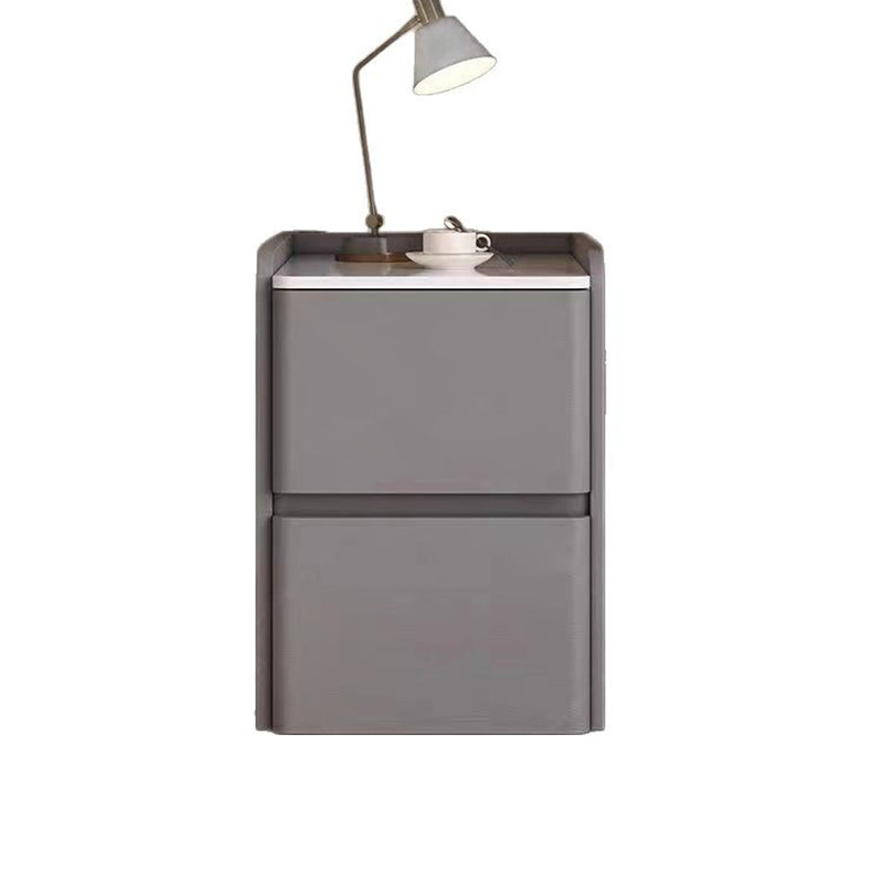 Modern Minimalist Rectangular Tabletop Rock Plate Solid Wood Microfiber Leather 2-Drawer For Bedroom