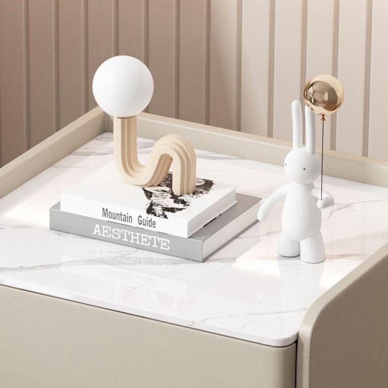 Modern Minimalist Rectangular Wood Microfiber Leather Rock Slab Nightstand 3-Drawer For Bedroom