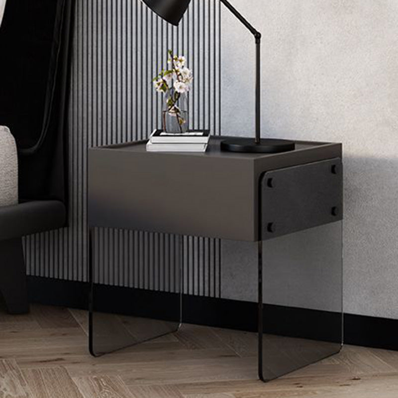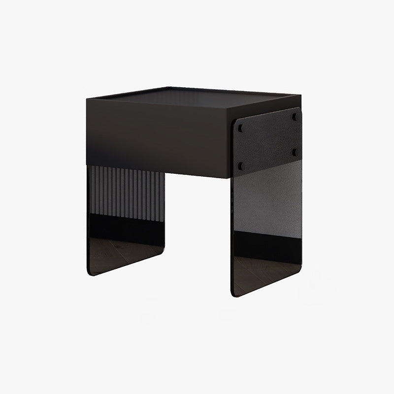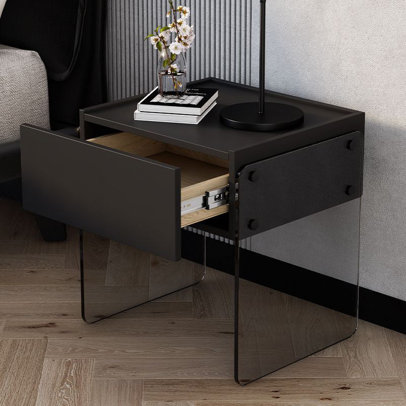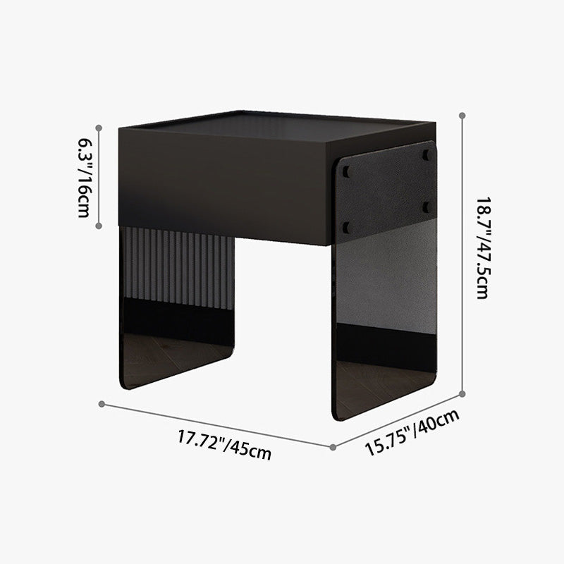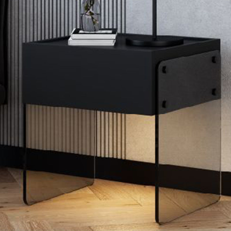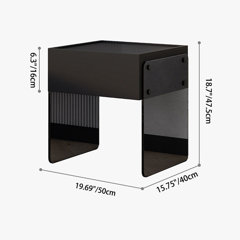 Modern Minimalist Rectangular Wood Plank Glass Nightstand 1-Drawer For Bedroom