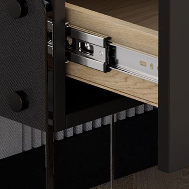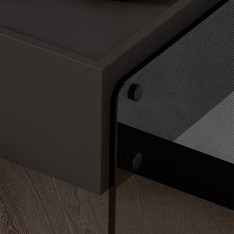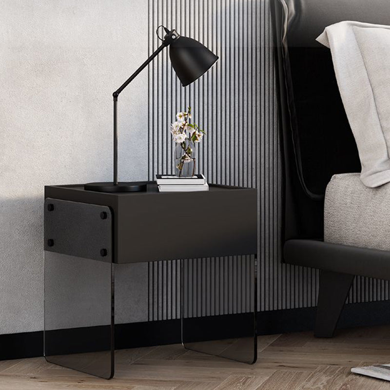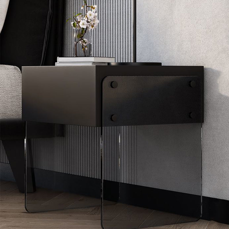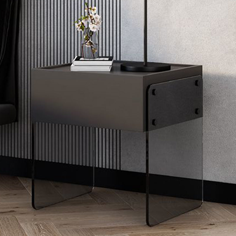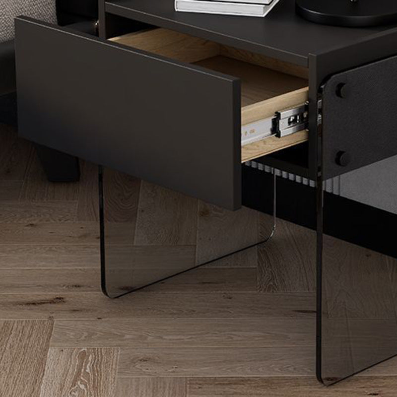 Modern Minimalist Rectangular Wood Plank Glass Nightstand 1-Drawer For Bedroom