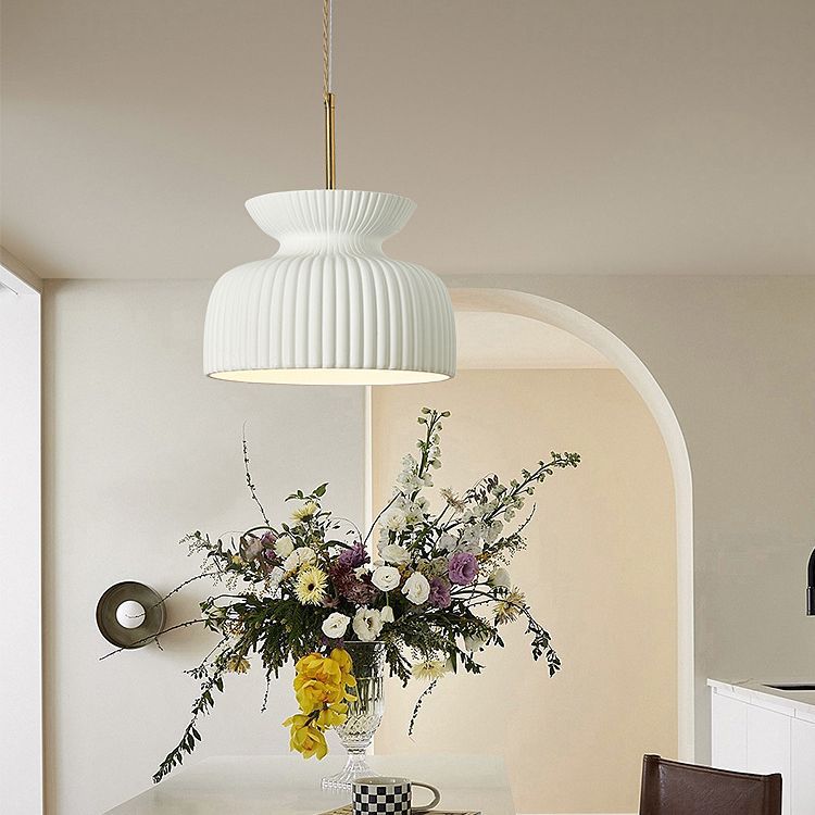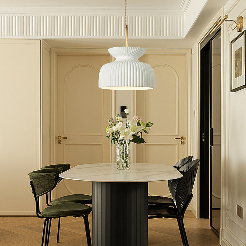 Modern Minimalist Ribbed Resin Iron 1-Light Pendant Light For Living Room