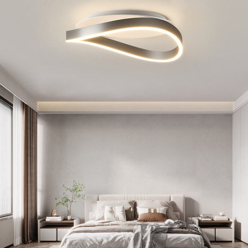 Modern Minimalist Ring Strip Irregular Disc Base Iron Aluminum Silicone LED Semi-Flush Mount Ceiling Light For Bedroom