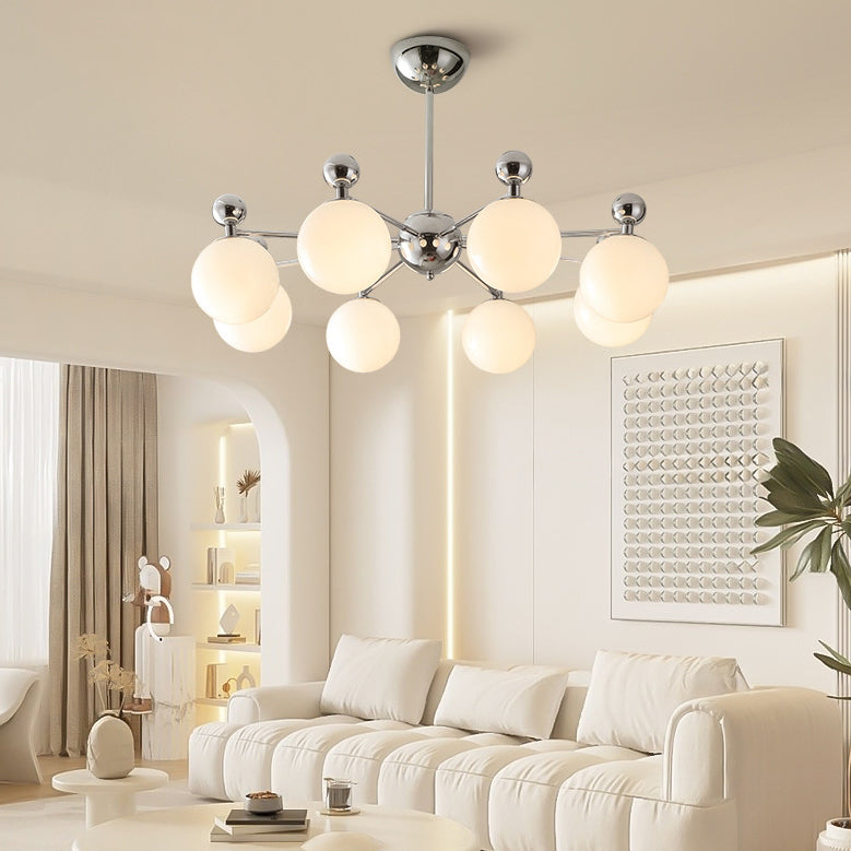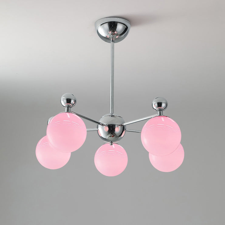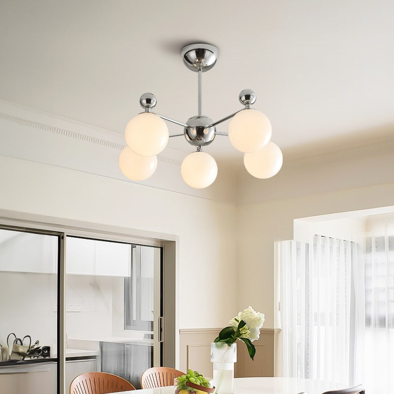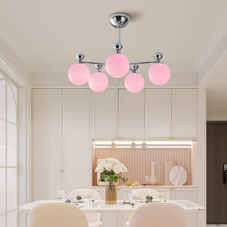 Modern Minimalist Round Ball Glass Iron 5/8 Light Chandelier for Living Room