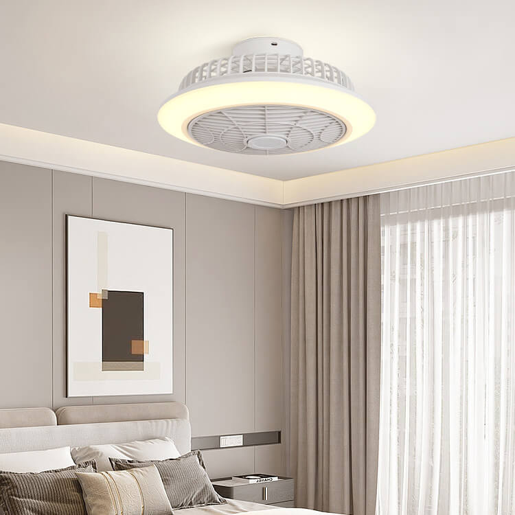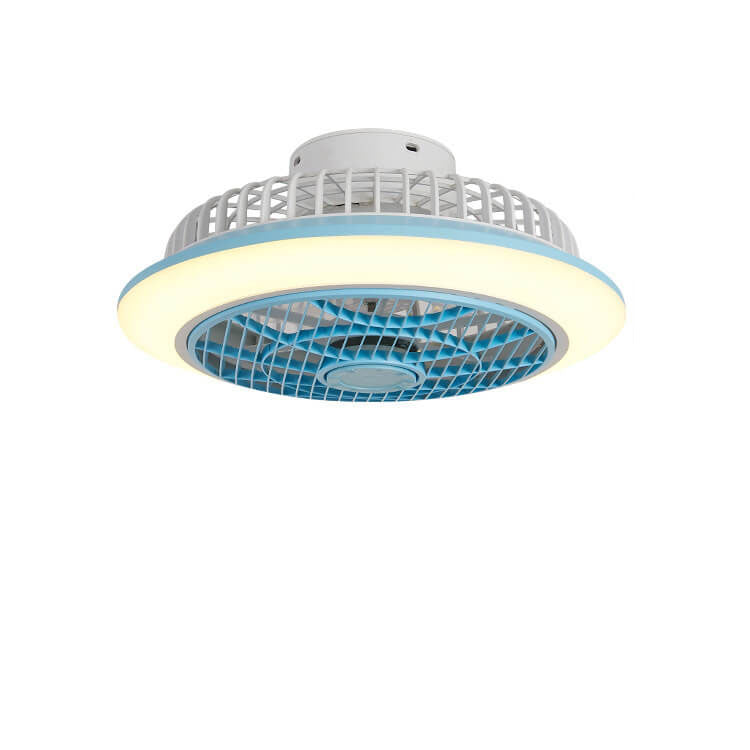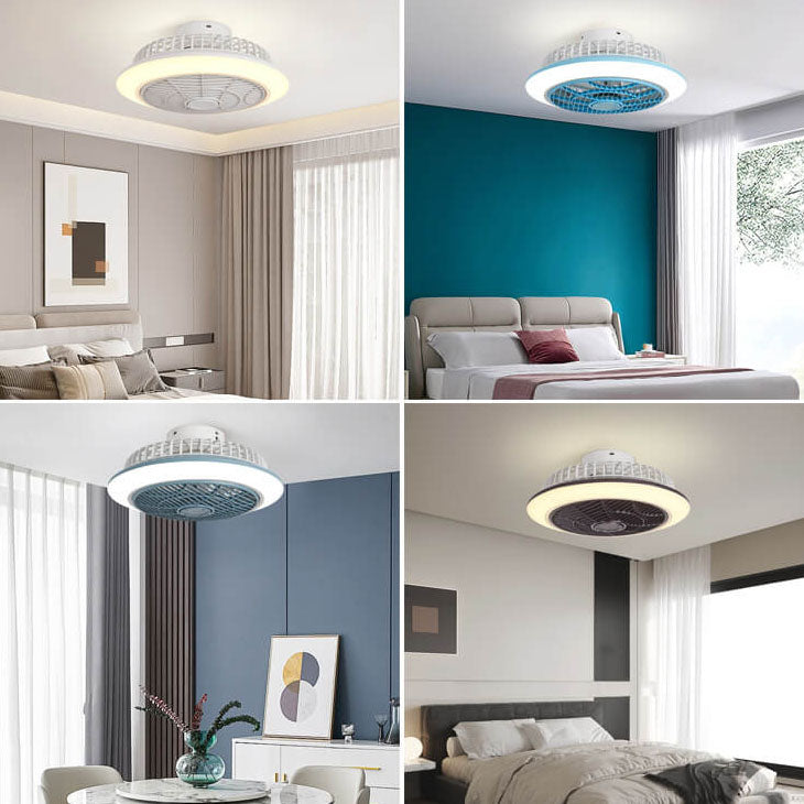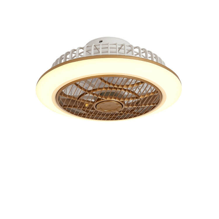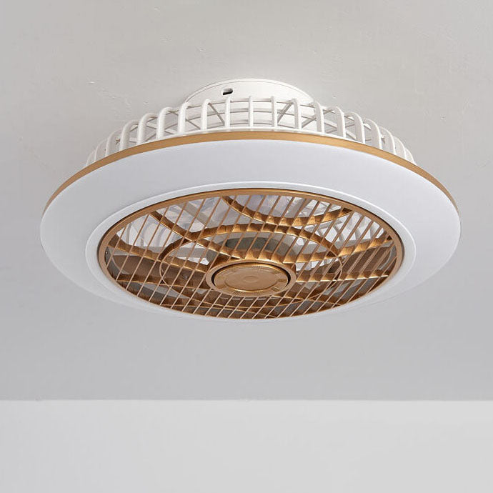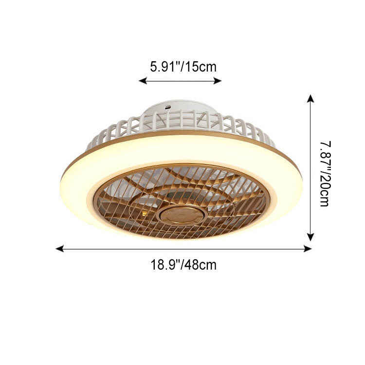 Modern Minimalist Round Cage Iron Acrylic LED Flush Mount Ceiling Fan Light