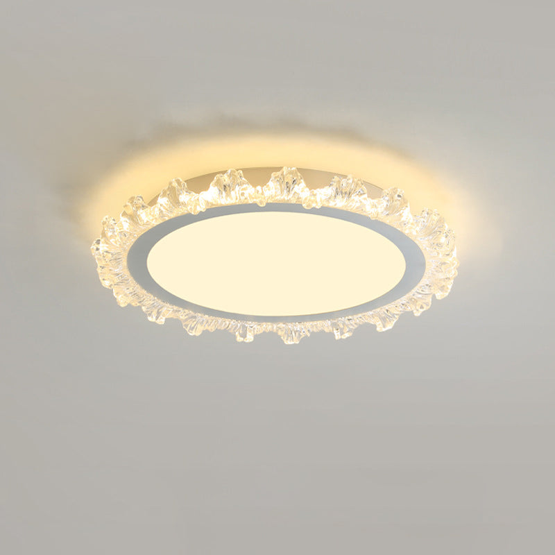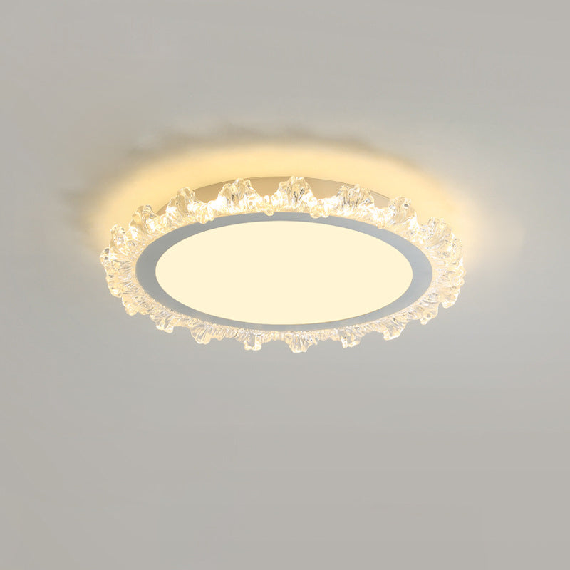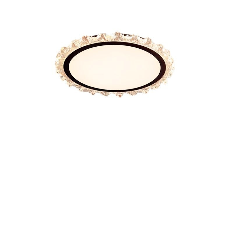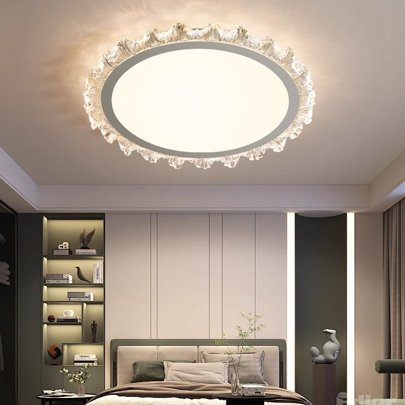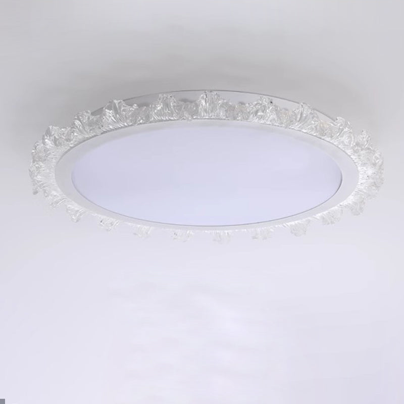 Modern Minimalist Round Cream Wave Acrylic Iron LED Flush Mount Ceiling Light For Living Room