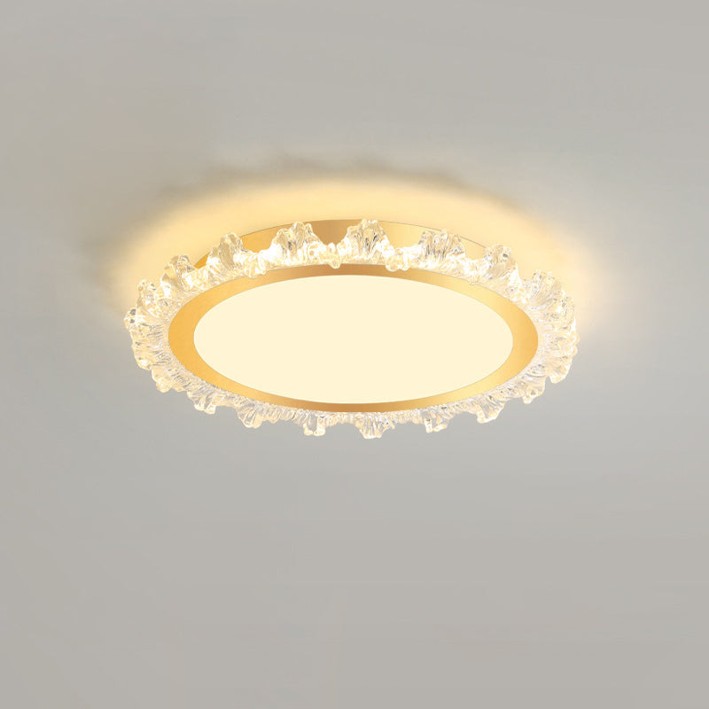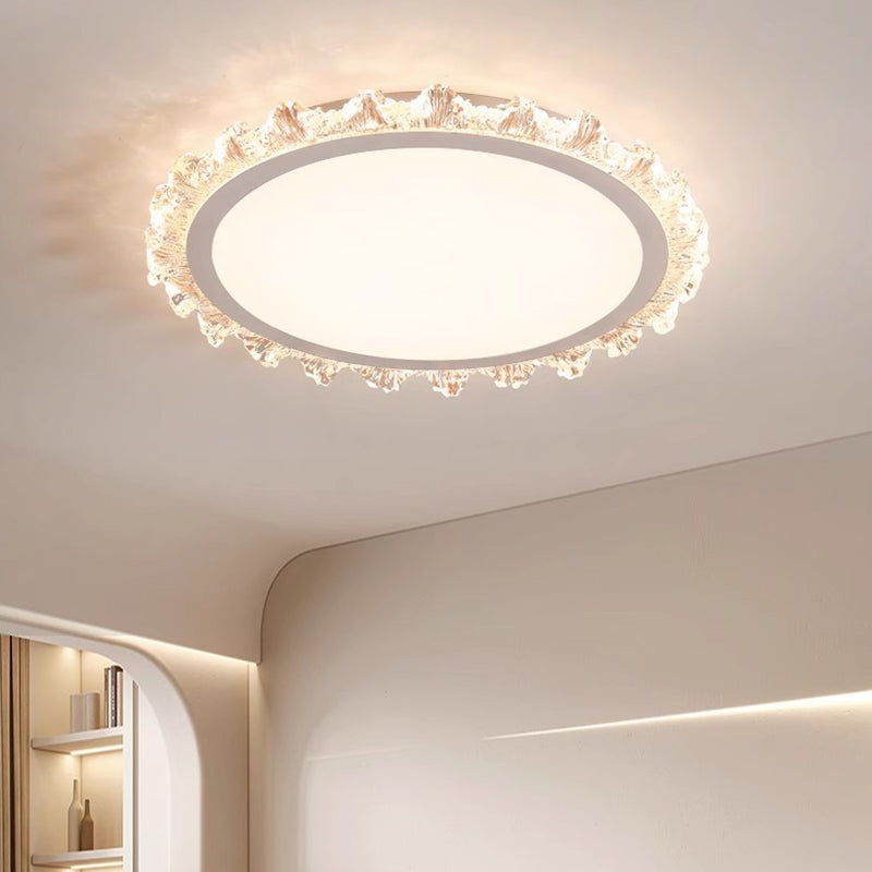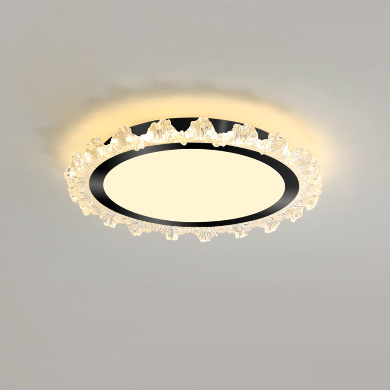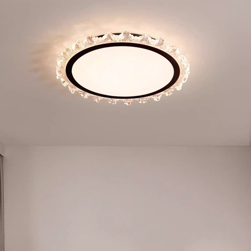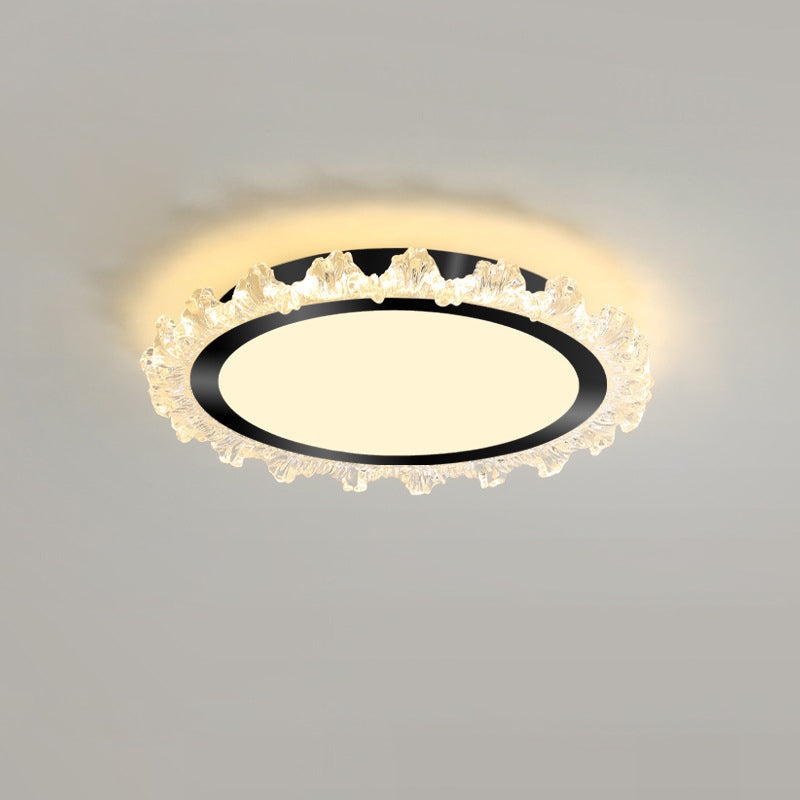 Modern Minimalist Round Cream Wave Acrylic Iron LED Flush Mount Ceiling Light For Living Room