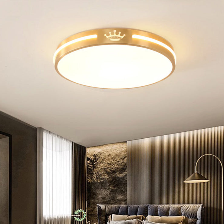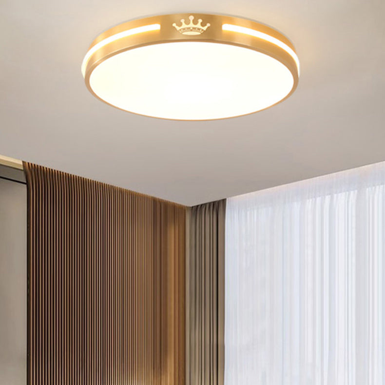 Modern Minimalist Round Crown Acrylic Copper LED Flush Mount Ceiling Light For Living Room