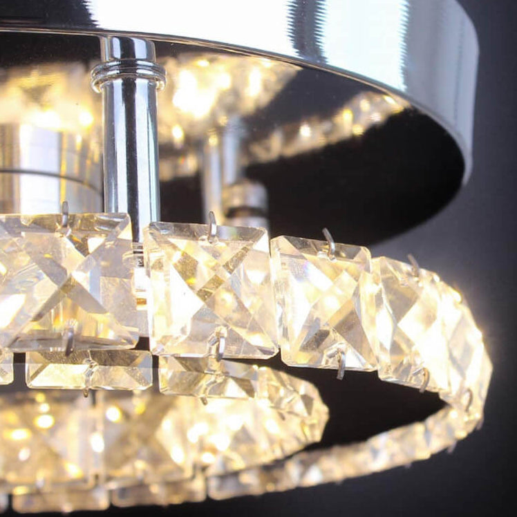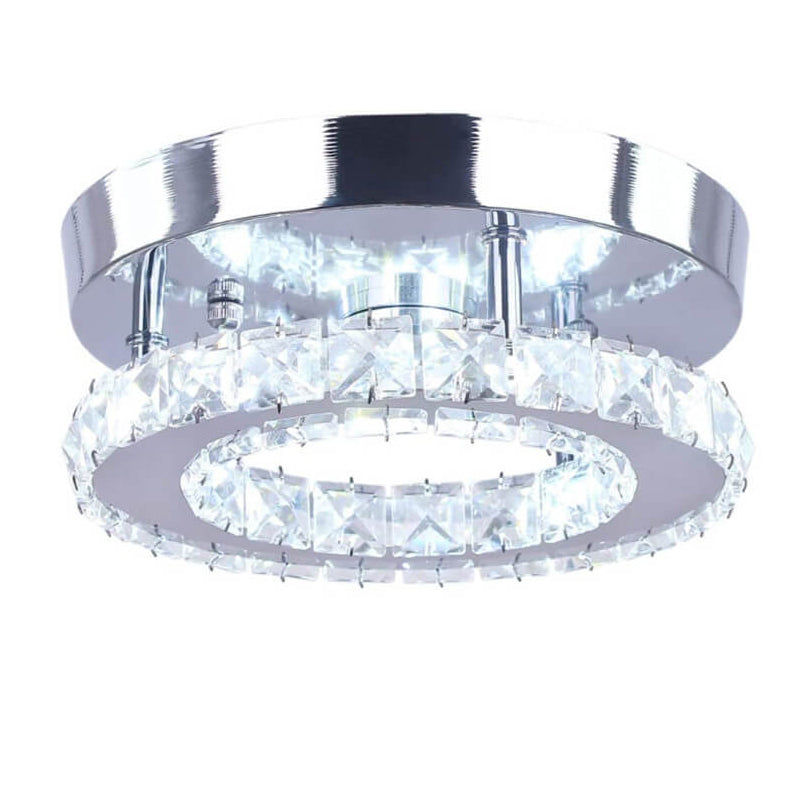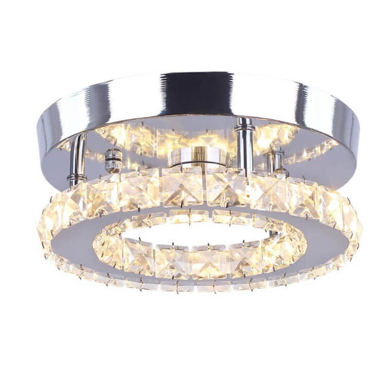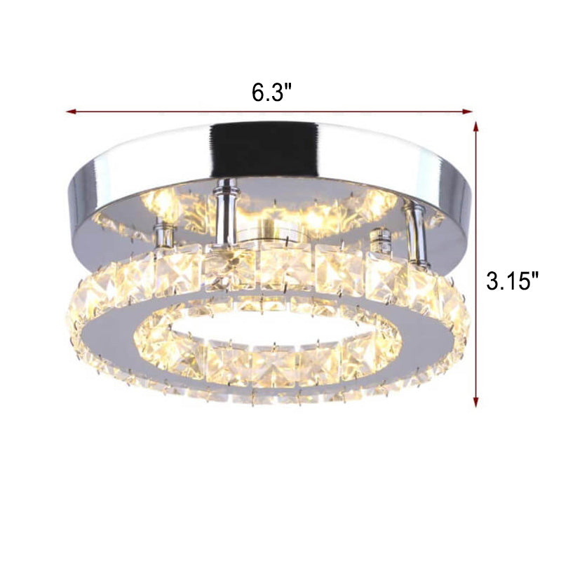 Modern Minimalist Round Crystal Mirror Stainless Steel LED Flush Mount Ceiling Light