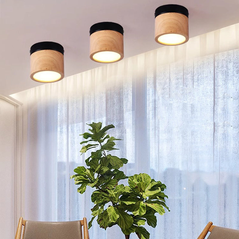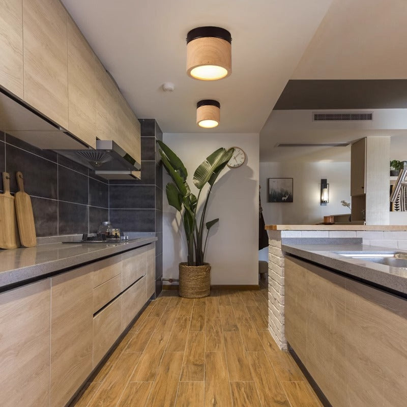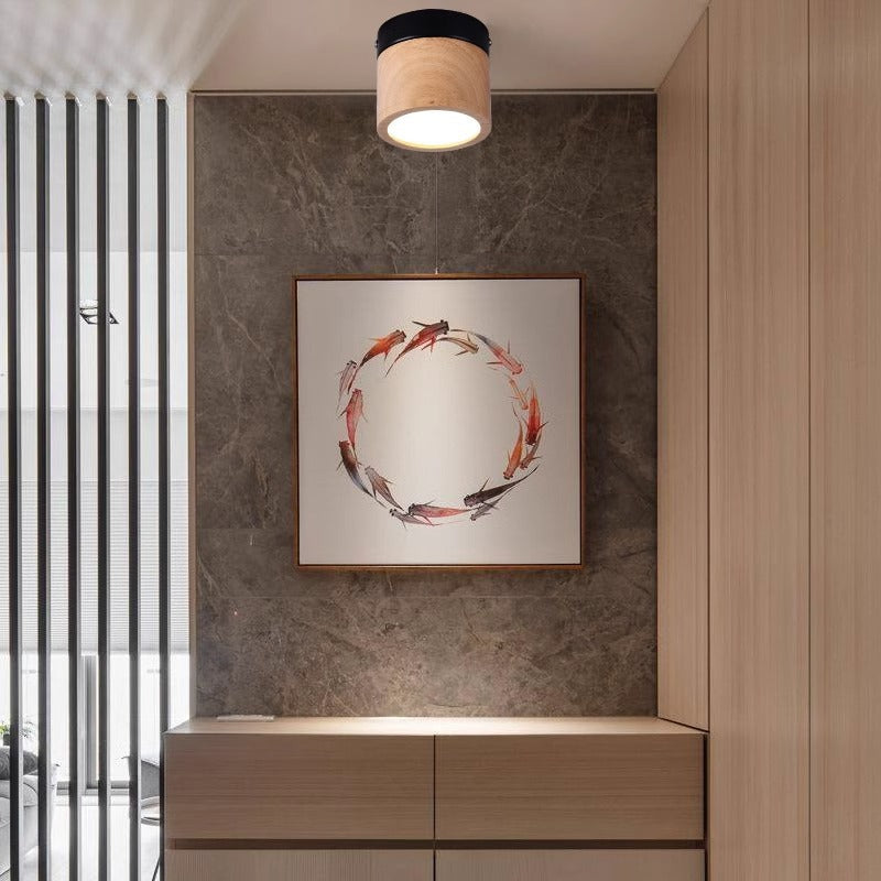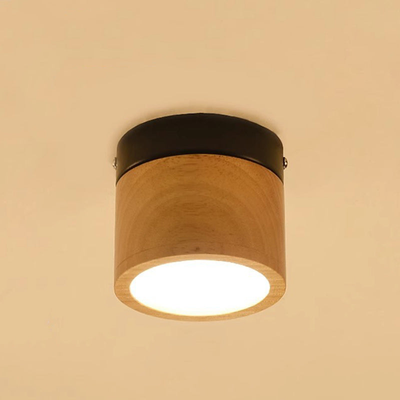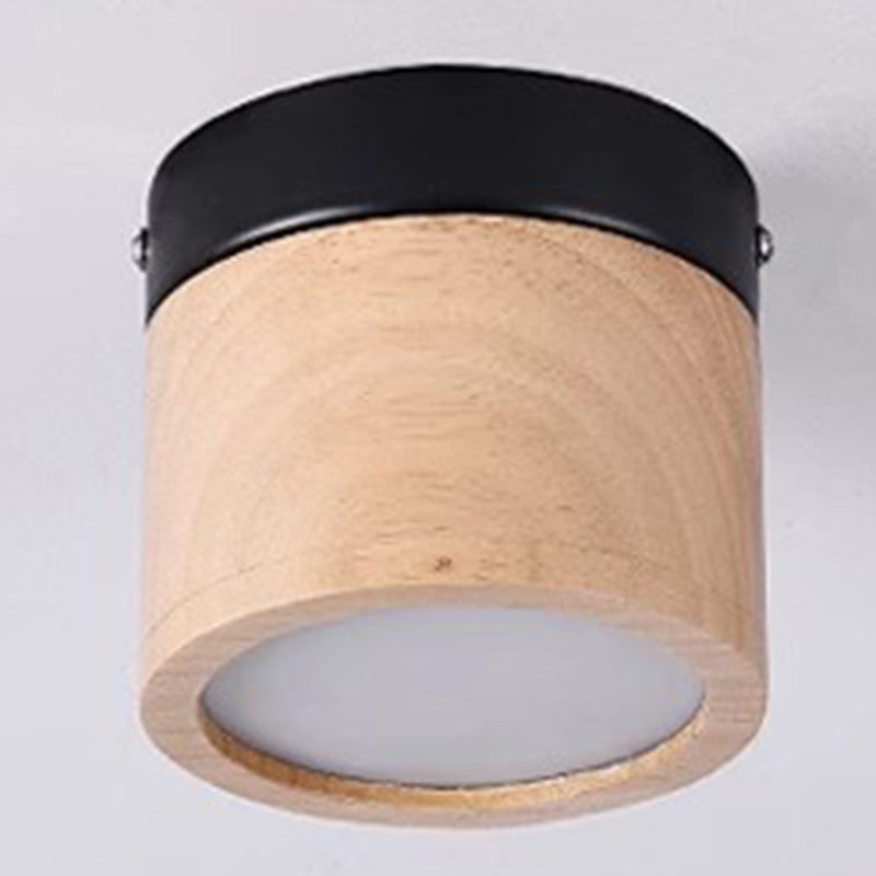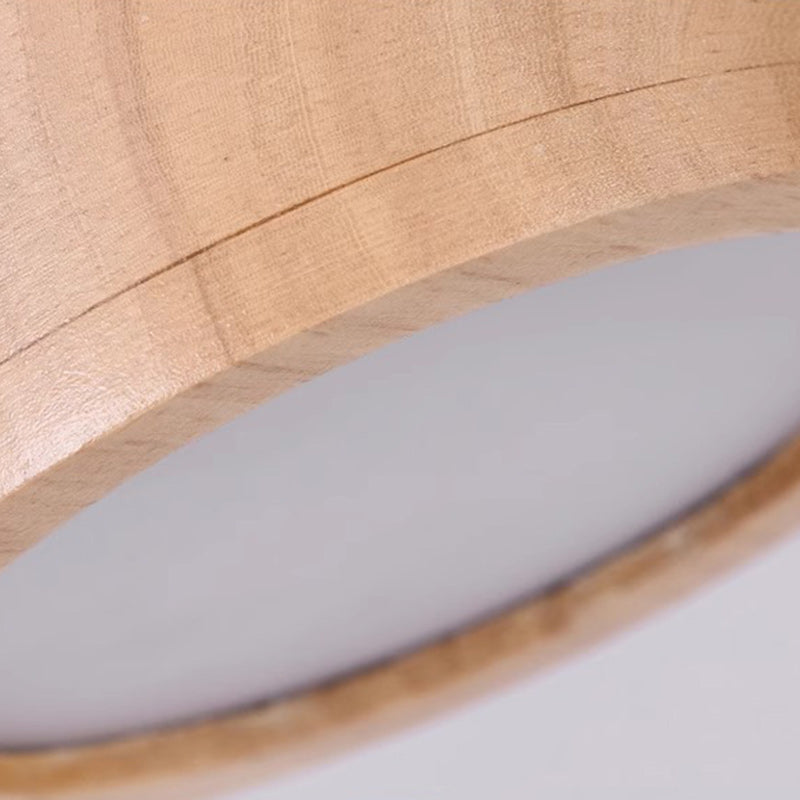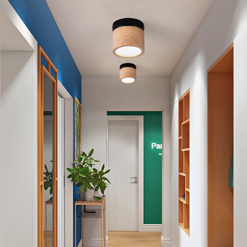 Modern Minimalist Round Cylinder Iron Rubberwood Acrylic LED Flush Mount Ceiling Light For Hallway