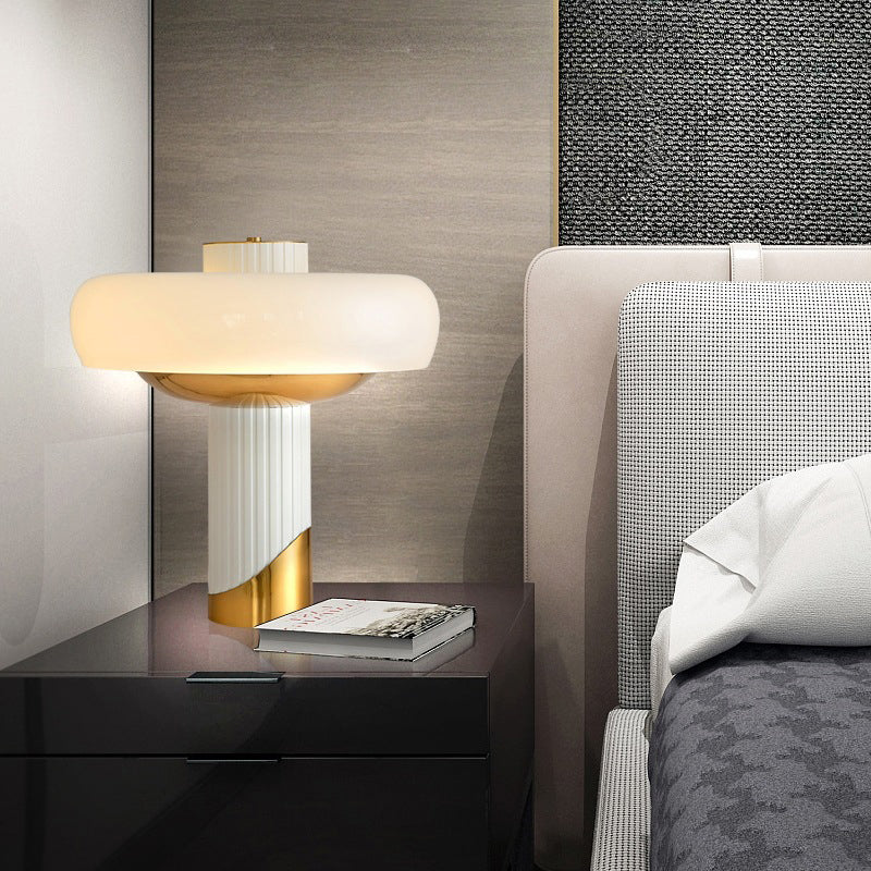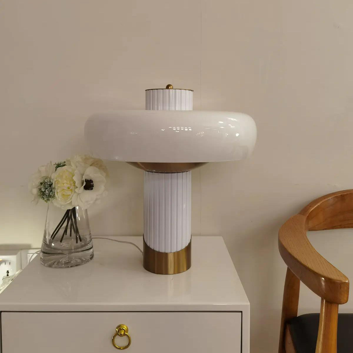 Modern Minimalist Round Cylinder Metal Glass 2-Light Table Lamp For Bedroom