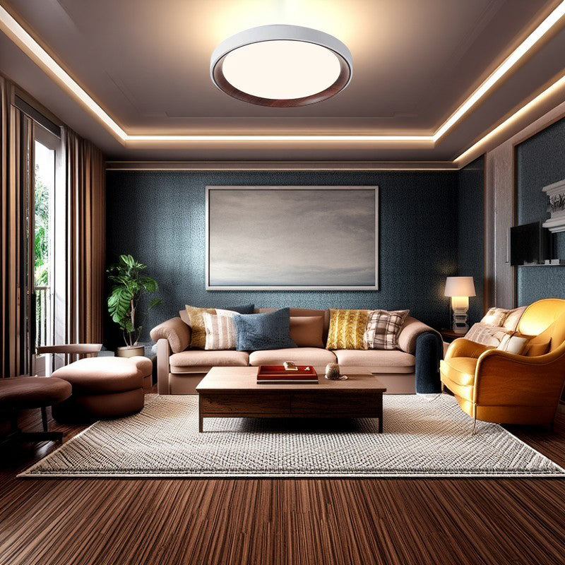 Modern Minimalist Round Cylindrical Iron Acrylic LED Flush Mount Ceiling Light For Bedroom