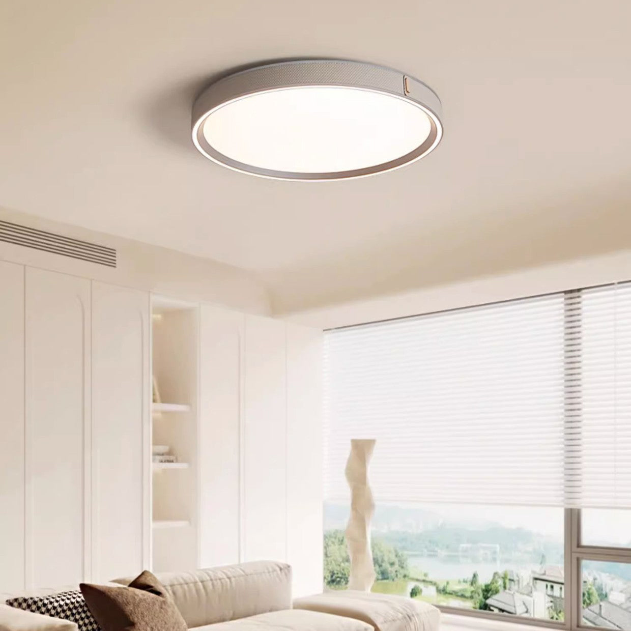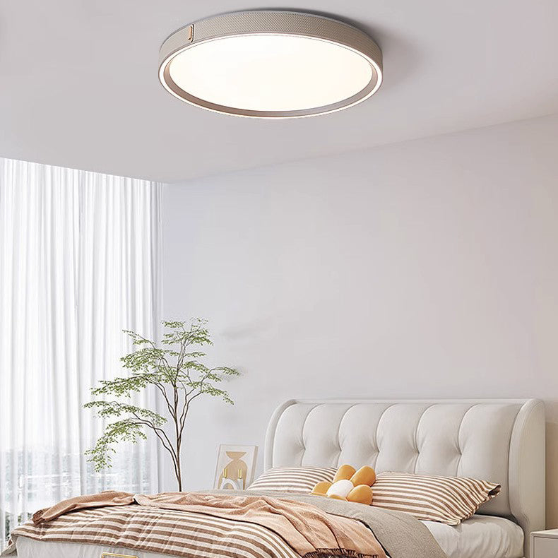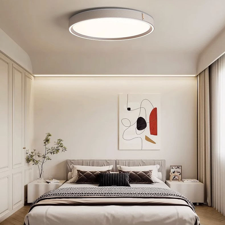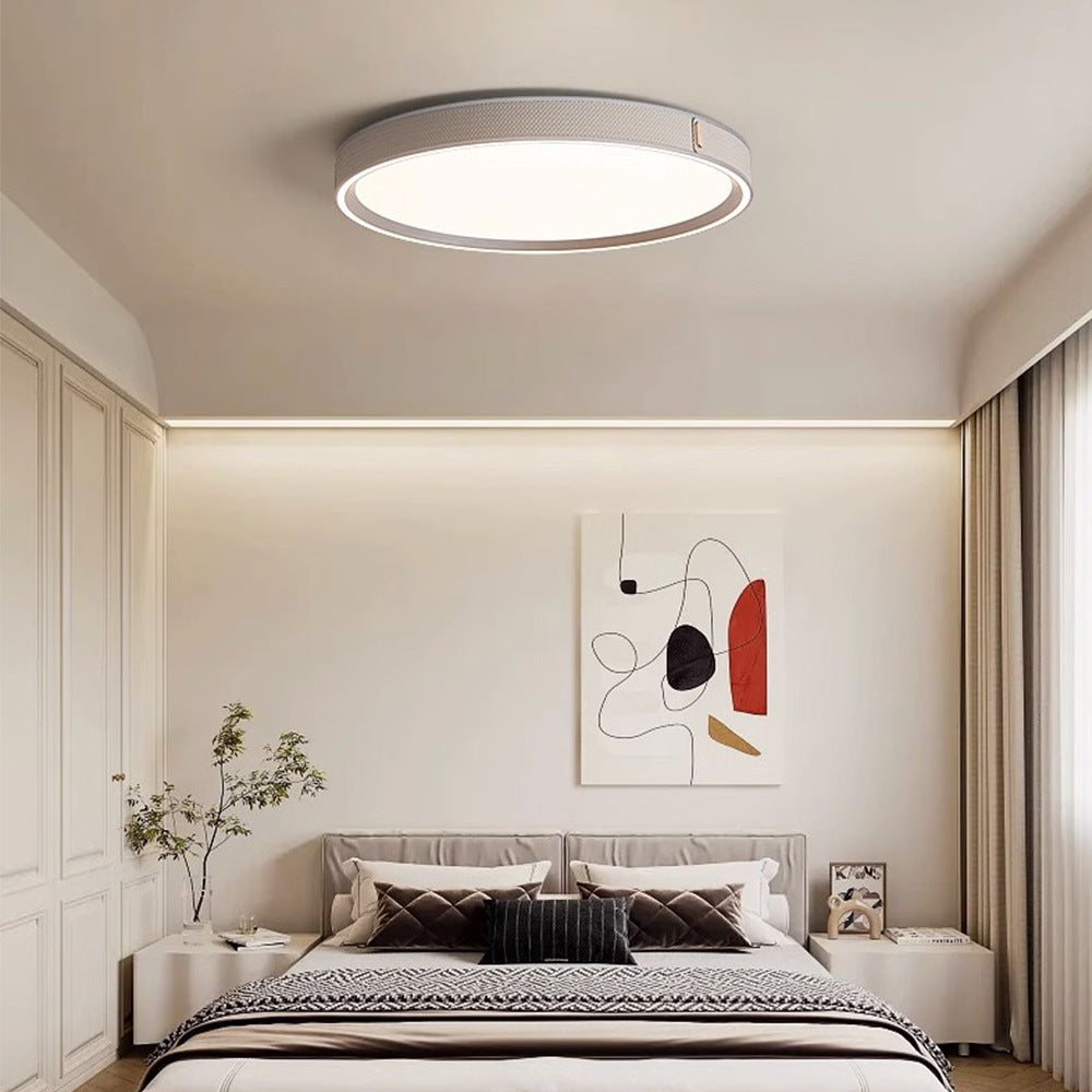 Modern Minimalist Round Dome Aluminum Iron Leather Acrylic LED Flush Mount Ceiling Light For Bedroom